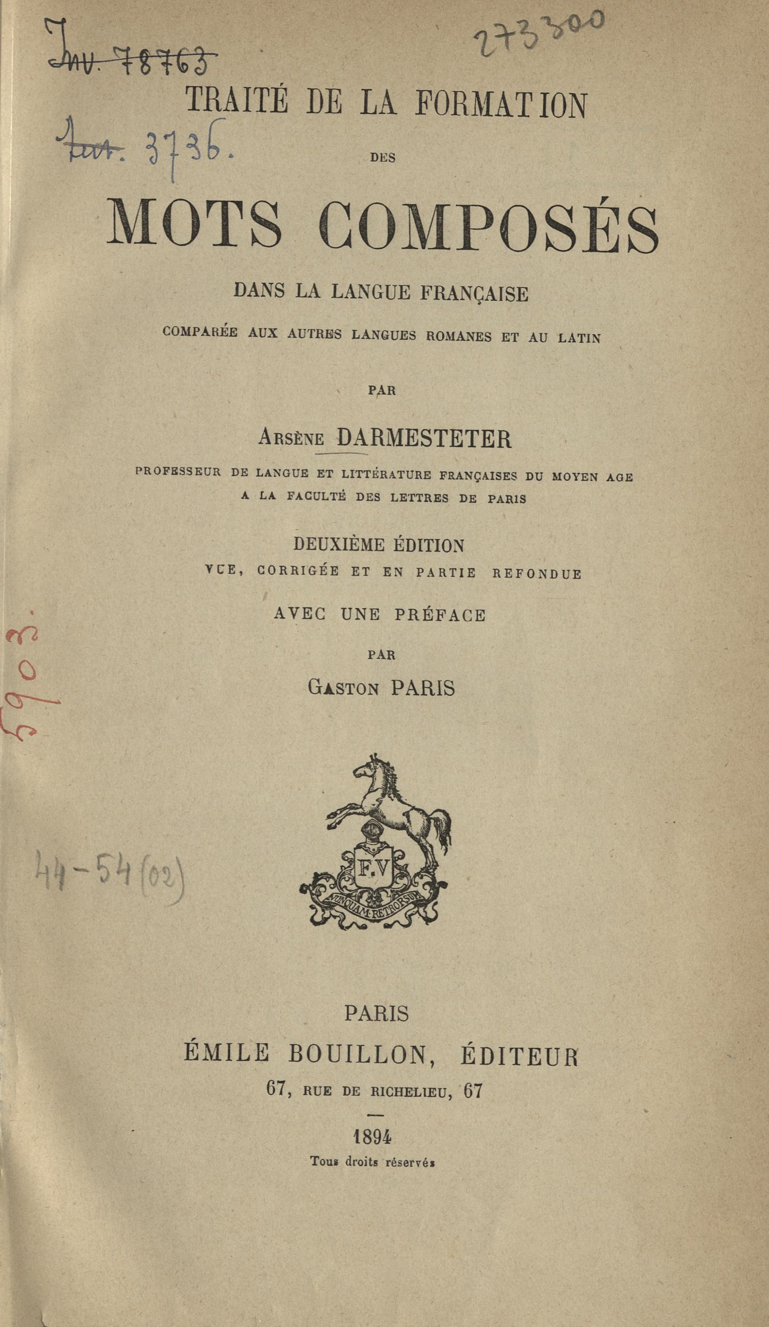 Traité de la formation des mots composés dans la langue française comparée aux autres langues