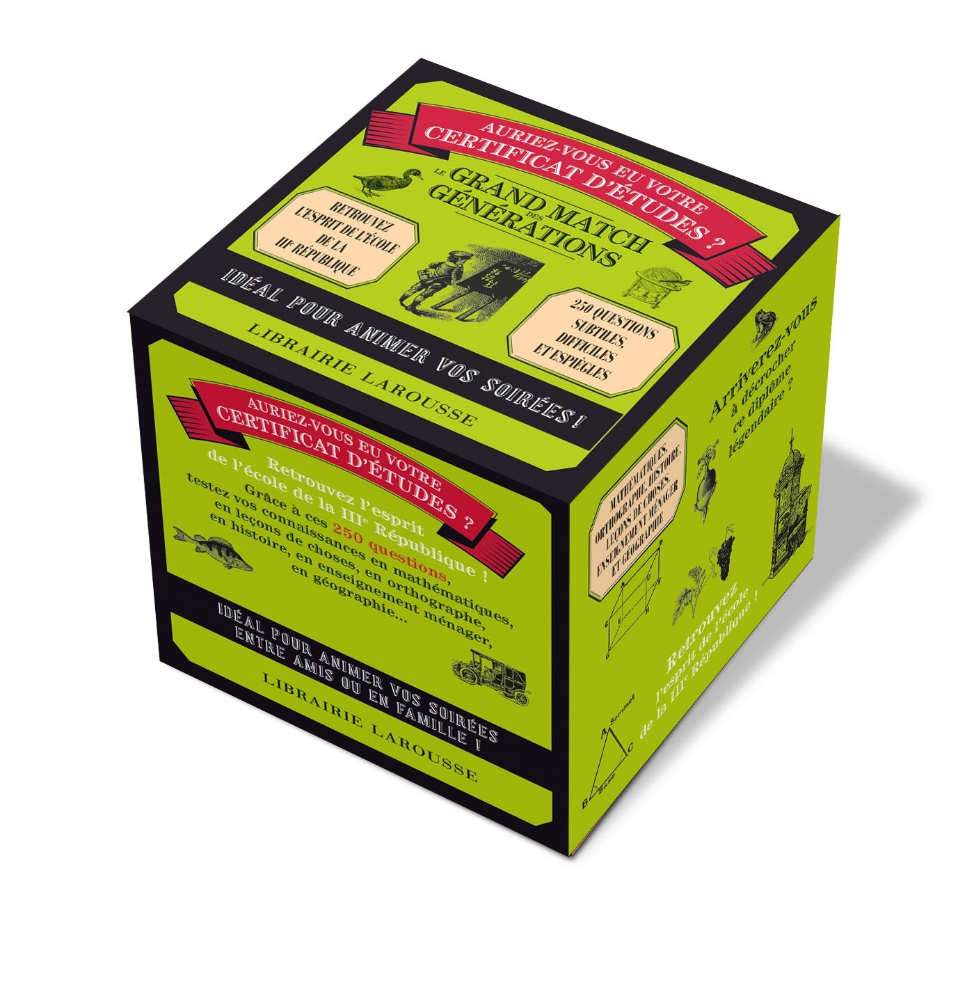 Retrouvez l'esprit de l'école des "hussards de la République" et laissez-vous surprendre par ces questions qui, pour être délicieusement désuetes, n'en sont pas moins ardues ! Etes-vous certain d'être incollable en culture générale, en histoire, en géographie, en sciences naturelles, en sciences physqiues, en musique, mais aussi en dessin ou chant ou encore en savoir-vivre ?