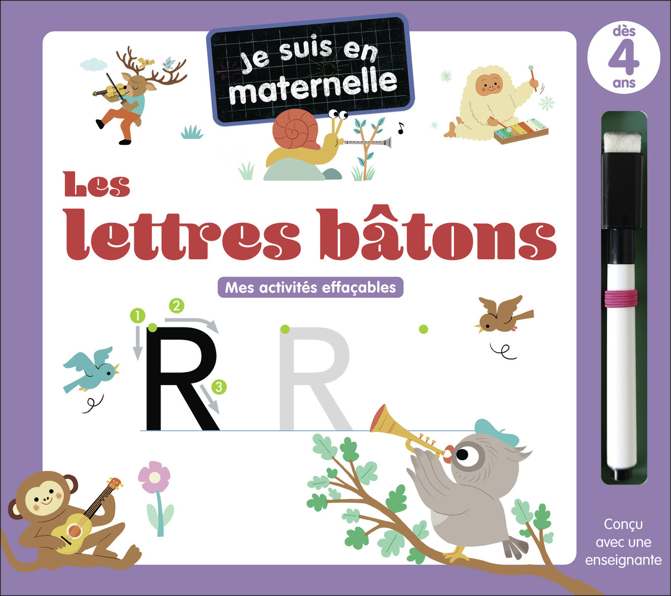 Un livre aux pages entièrement effaçables pour découvrir le tracé des lettres majuscules bâtons et s'entraîner à les écrire ! Les pages s'effacent avec le capuchon du feutre ou un chiffon humide. Un modèle fléché pour décomposer le tracé Des conseils...