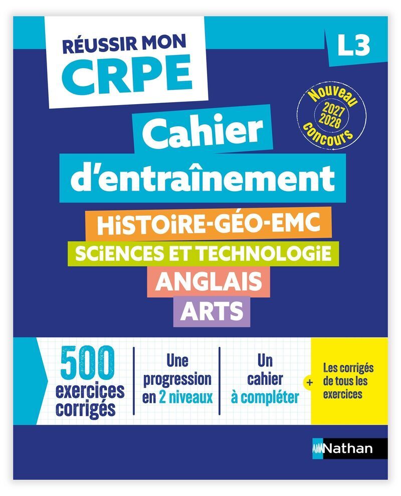 Découvrez le nouveau cahier d'entrainement L3 pour préparer la 2e épreuve d'admissibilité - Histoire/Géo/EMC - Sciences et technologie - Arts et Anglais Écrit - du Concours de Professeur des Écoles (CRPE) 2027-2028. Confor...