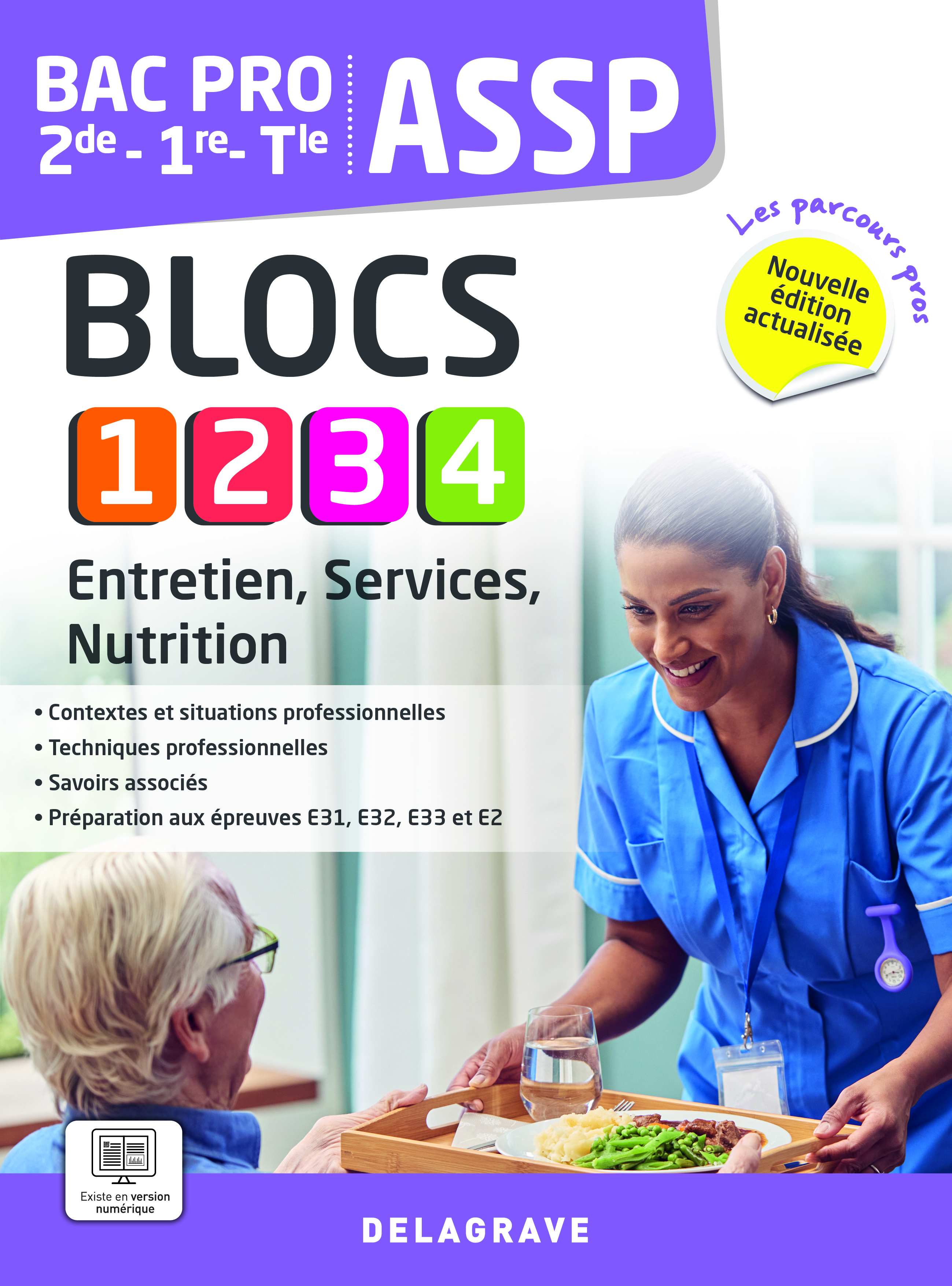 Le manuel consommable Entretien, Service, Nutrition (enseignements de BSE des 4 Blocs) fait partie de la collection Les parcours pros, leader en ASSP. Conçu par blocs de compétences, il propose une organisation facilitée des enseignements et est conforme à la réforme de 2022. L'édition 2026 est actualisée et augmentée suite à la 1re session du Bac ASSP réformé.Toutes les compétences des Blocs 1, 2, 3 et 4 via les contenus relevant de l'enseignement de BSE rassemblées dans un seul volume :-techniques professionnelles ;-savoirs associés.Données chiffrées et informations techniques actualisées, nouveaux documentsDes pistes de contextes professionnels et de situations à adapter au bassin d'emploi localDes objectifs par activité pour guider les élèves et les rendre acteurs de leurs apprentissagesDes pistes pédagogiques et des ressources proposées pour faciliter la mise en place de la co-intervention avec le français, les mathématiques et les sciencesUne préparation aux épreuves E31, E32, E33 et E2