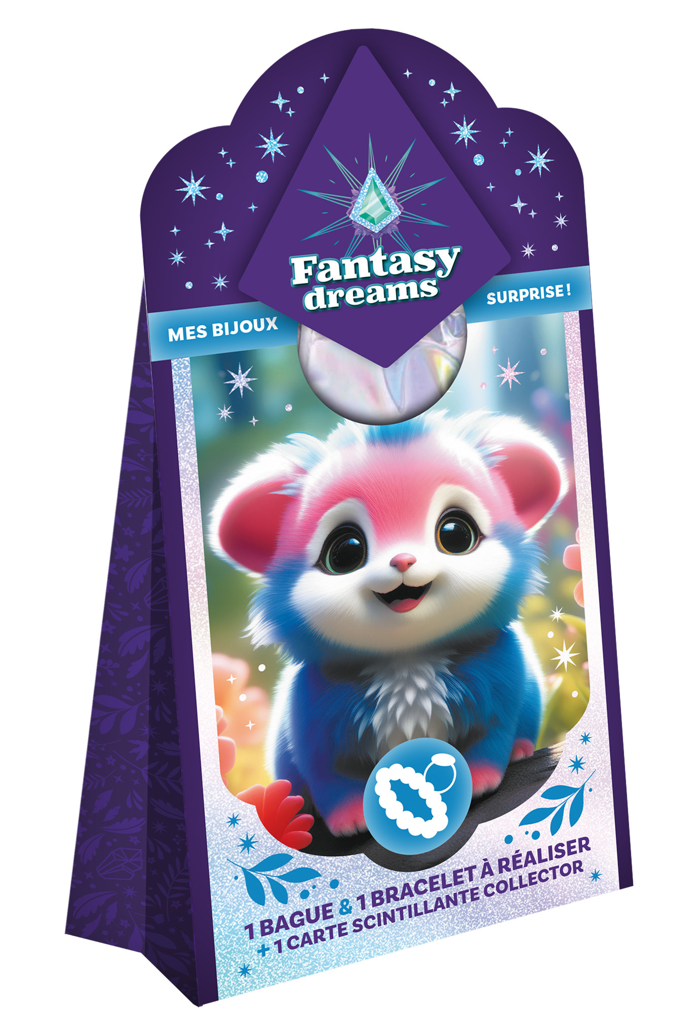Cette boîte mystère renferme un bracelet et une bague à confectionner, mais aussi une carte scintillante représentant un animal trop mignon.Bloom, Lumi, Tahia ou Nova ? Cœur, flocon, étoile ou fleur ? À chaque créature son symbole et des bijoux différents.
