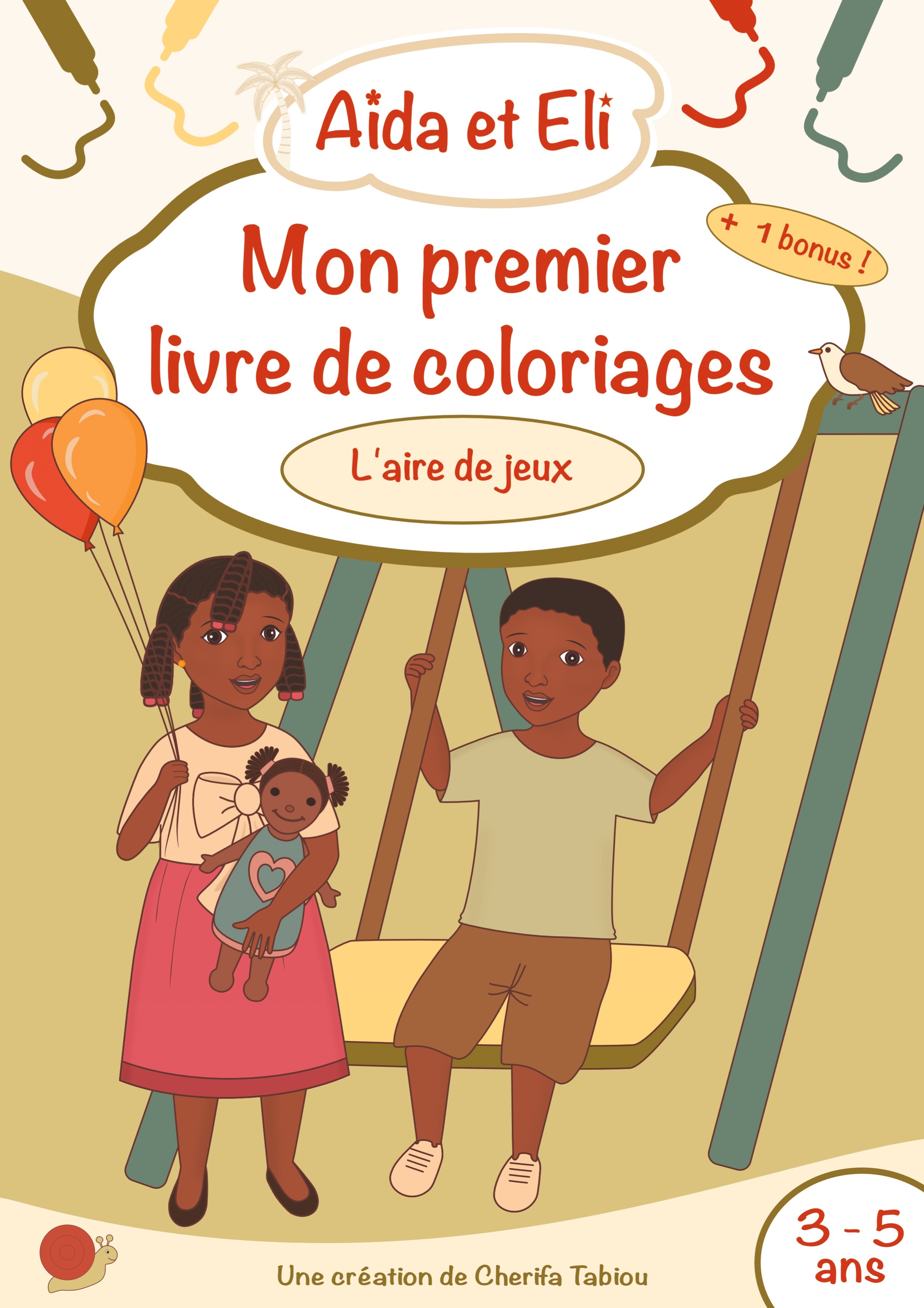 Aïda et Eli partagent de bons moments à l'aire de jeux, en compagnie de leur grande soeur Raïssa et de leurs amis Nana, Elom et Jia !Amuse-toi à les colorier avec les couleurs de ton choix !Et, si tu veux, tu peux découper chaque page, à l'aide des p... See full description