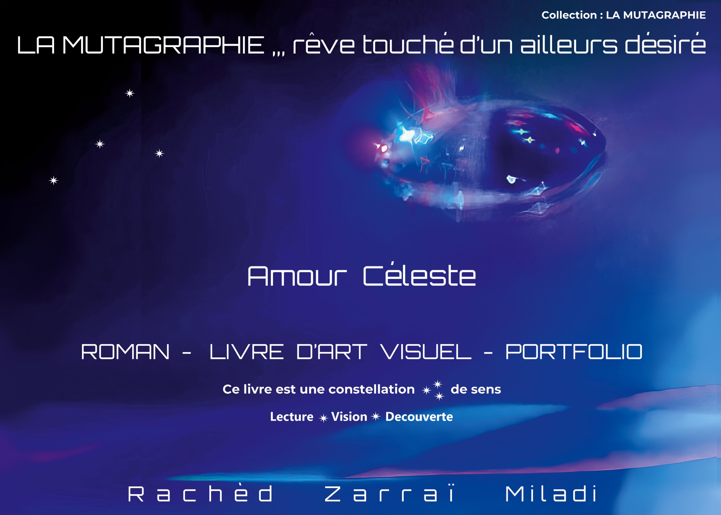Dans un univers où l'amour traverse les constellations, La Mutagraphie, Rêves d'un ailleurs tisse une odyssée visuelle et narrative entre deux âmes en quête de lumière. Dehcar, artiste cosmique, revient sur Artisia après une rupture douloureuse, porté par le souvenir d'un amour perdu et l'appel d'un lien nouveau. Céleste, muse étoilée, s'approche, guidée par une fréquence intime. A travers mutagraphies, contes et récits sensoriels, le livre explore les vertiges du rapprochement, les épreuves de la confiance, et les promesses gravées dans l'éther. Roman, livre d'art et portfolio, cette oeuvre hybride célèbre l'amour comme force transformatrice, entre mémoire et invention, entre silence et éclat. Chaque page devient constellation, chaque image un battement de coeur.Ce livre n'est ni un roman à part entière, ni un simple livre d'art, ni un portfolio traditionnel. C'est une traversée singulière, où l'artiste insuffle son histoire intime dans un récit venu d'un autre temps et d'un autre espace, avec la complicité vibrante de sa muse. Les images qui accompagnent le texte ne sont pas de simples illustrations : elles sont des visions vécues, des instants imaginaires captés dans la réalité photographique, comme si le rêve avait pris forme dans la matière du monde. Chaque mutagraphie est une mémoire recomposée, une émotion cristallisée, une vérité parallèle révélée par le regard.Mutagraphie > Signature artistique unique, technique photographique inventée par l'auteur, coeur visuel et conceptuel du livre.Amour cosmique > Thème central du récit, fusion de l'intime et du céleste, moteur émotionnel de l'odyssée.Art visuel narratif > Genre hybride du livre, mêlant image et texte dans une mise en scène poétique.Récit chimérique > Ton littéraire et spatial : fiction située dans un autre temps, un autre espace, portée par l'imaginaire mais ancrée dans la réalité.Mémoire transfigurée > Démarche artistique : transformer le vécu en rêve, le souvenir en image, l'intime en universel.