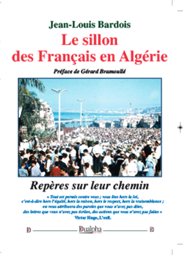En 1954, Jean-Louis Bardois a 10 ans. Il ne fêtera pas ses 18 ans dans son pays natal… L’école Volta d’Alger, les louveteaux, les scouts, le temps des chagrins terribles : « Dien Bien Phu est tombé… », Orléansville dévastée par le tremblement de terre, les meurtres de la Toussaint 1954, puis Bône à l’été 1955 avec ses voitures calcinées lors de sauvages embuscades, suivies des bombes meurtrières dans Alger (cette ville si belle qu’il est inimaginable de penser devoir la quitter un jour), le lycée E.F. Gautier, l’Agelca (association des élèves et lycées et collèges), dirigée par Jacques Rozeau, son journal Le Bahut, vendu avec enthousiasme aux belles heures de l’espérance de mai 1958 : drames, violences, parjures, exils deviennent les repères de l’adolescence… Et après ? Après, ce sont cinquante ans de silence d’un peuple banni du souvenir, victime muée en coupable, enseveli sous le sarcophage d’une Histoire-fable, inventée par de très provisoires vainqueurs…Alors, ce livre se veut une des clefs du sarcophage : de l’Antiquité à la Régence turque, de la Conquête française qui allait délimiter le territoire devenu Algérie jusqu’aux différentes étapes de la présence de la France, l’aménagement du pays et ses gouvernances, la société de l’Algérie au seuil de la rébellion, les épisodes conflictuels qui aboutissent à la sécession, les acteurs de la politique française de l’époque, leurs interventions et leurs discours replacés, enfin, dans leur contexte et leur chronologie… Le regard de l’auteur, aussi scrupuleux qu’accessible, est comme un sommaire, un classeur pour situer dans le temps le chemin parcouru par les Français d’Algérie et l’abondante littérature rapportant ces épisodes…Très nombreuses illustrations, cartes et tableaux…