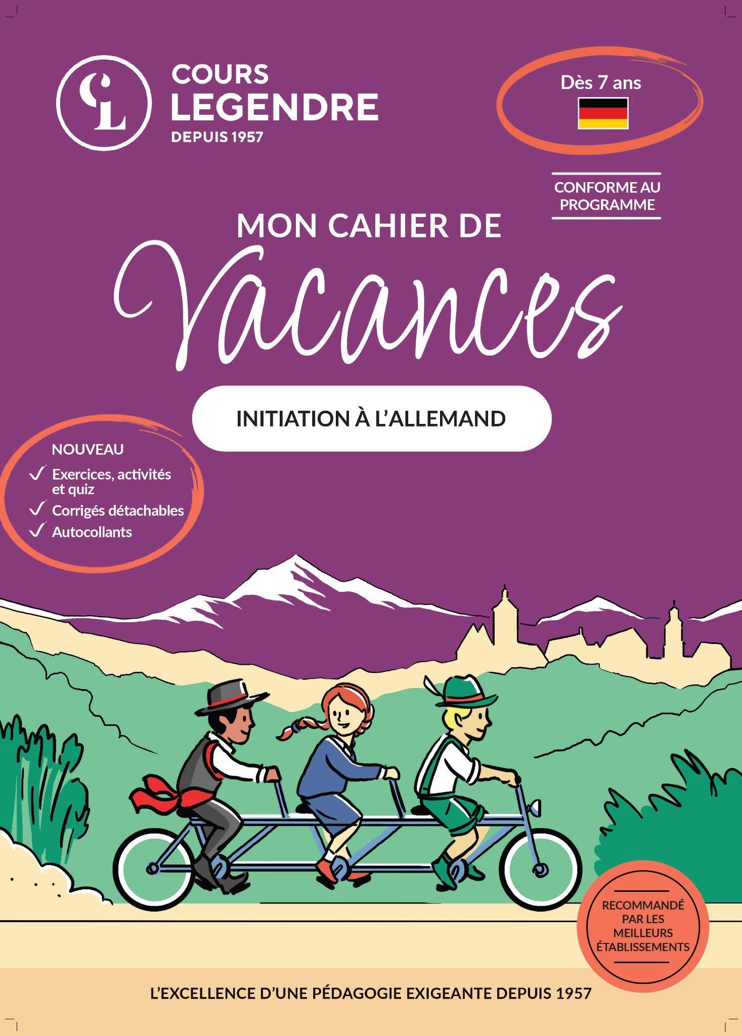 Ciblé sur les fondamentaux de la langue allemande, cette toute nouvelle édition de notre cahier de vacances Initiation à l'allemand, est l'outil indispensable pour réviser, dès 7 ans, en s'amusant et démarrer la rentrée en toute sérenité.Cours Legendre, acteur historique du soutien scolaire, propose un cahier de vacances d'initiation à l'allemand. Cette toute nouvelle édition, a fait l'objet d'une refonte complète. Ce cahier est l'outil indispensable pour réviser en s'amusant et démarrer la rentrée en toute sérenité.Dès 7 ans, cahier utilisable de façon classique ou de manière ciblée grâce à l'index des notions revues :- 30 séances de révision réparties en 5 périodes, à faire à son rythme, intégrant des rappels de cours, des conseils phonétiques et de nombreux exercices ludiques- Livret parents-corrigés détachable- Nombreuses pistes audios qui accompagnent l'enfant tout au long du cahier incluant des chansons pour développer sa compréhension orale et sa prononciation- Autocollants pour récompenser la progression dans le cahier et la réalisation des exercices Champion