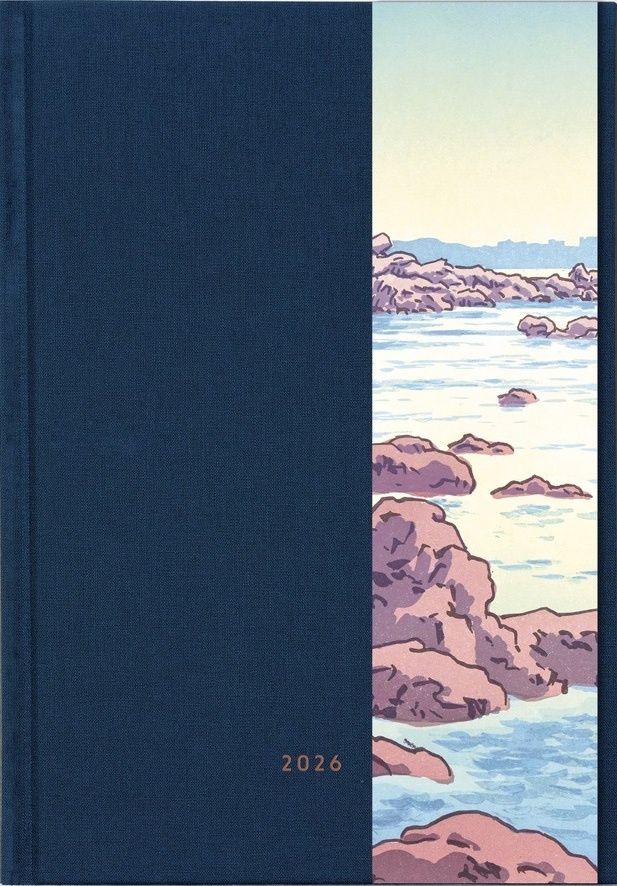 L’agenda thématique 2026 de Reliefs s’inscrit dans la continuité de la collection HORIZON. Il propose un agenda semainier, des illustrations d’Henri Rivière issues de la série « La mer : études de vagues », et des extraits littéraires de différents auteurs (d’Aristote à Virginia Woolf) explorant les deux côtés de l’horizon, des abysses aux nuages, en passant par les vagues et les aurores boréales.