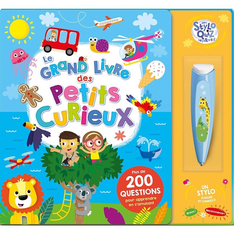 Un livre grand format accompagné d'un stylo interactif sonore et lumineux pour découvrir plein de choses en s'amusant, à partir de 3 ans. Cet album cartonné propose 19 doubles pages joyeusement illustrées, chacune dédiée à une thématique familière : la ferme, la jungle, la banquise, la ville, l'océan, les dinosaures, les saisons, les véhicules... Chaque scène fourmille de détails, invitant à l'observation pour répondre à 12 questions sur les côtés. L'enfant n'a pas besoin de savoir lire, il suffit de regarder l'illustration et de choisir la réponse que le stylo valide par un signal sonore et lumineux. En tout, plus de 200 questions pour développer vocabulaire, logique et curiosité, tout en favorisant l'apprentissage en autonomie.