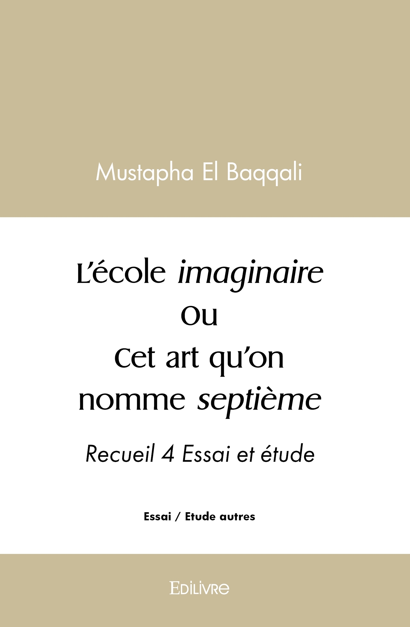 L'école imaginaire s'apparente à un double essai d'imagination et de réflexion sur l'audiovisuel. L'ouvrage recèle de récits anecdotiques émanant d'expérience vécue de prof de français au service de ses futurs apprenants. L'auteur revendique le rêve absolu d'initier ses élèves virtuels au septième art, à l'image, de son idole, M. Saïl maestro du cinéma marocain. Relever le défi de créer son école imaginaire alternative ? Il en assume la fantaisie. Il sensibilise alors ses apprenants fictifs à la communication (Première partie) et au septième art (Deuxième partie).