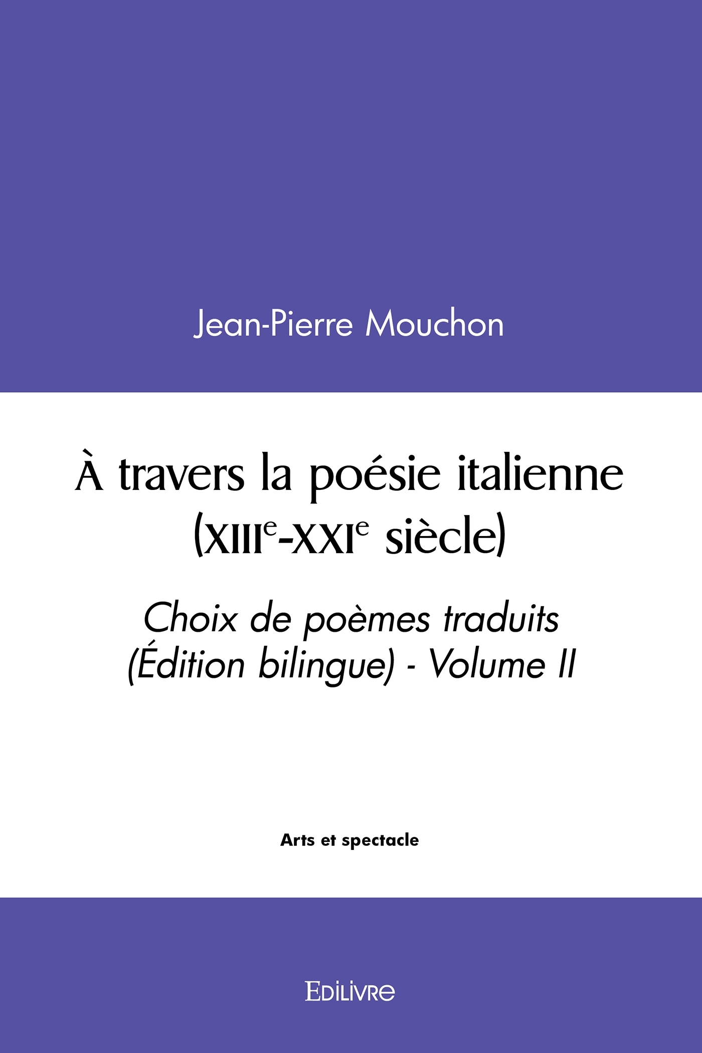 Le tome I de cette anthologie bilingue offre un choix de poèmes italiens couvrant les XIIIe-XXe siècles, de Saint François d'Assise à Ardengo Soffici, fondateur de la revue Lacerba avec Giovanni Papini. Ces poèmes sont accompagnés de leur traduction française et d'abondantes notes en fin de volume. Le tome II continue à proposer un large choix de poèmes d'auteurs du siècle dernier, accompagnés de leur traduction en français et de notes de bas de page, en partant du Turinois Guido Gozzano, chef de file du mouvement " crépusculaire ". Il inclut également quelques poètes du premier quart du XXIe siècle, tels que Roberto Piumini, Silvia Bre, Federica Sabattini, Michela Zanarella et Andrea Lanzola qui se sont fait connaître par des recueils de poèmes ou, plus généralement, par des sites internet gratuits.