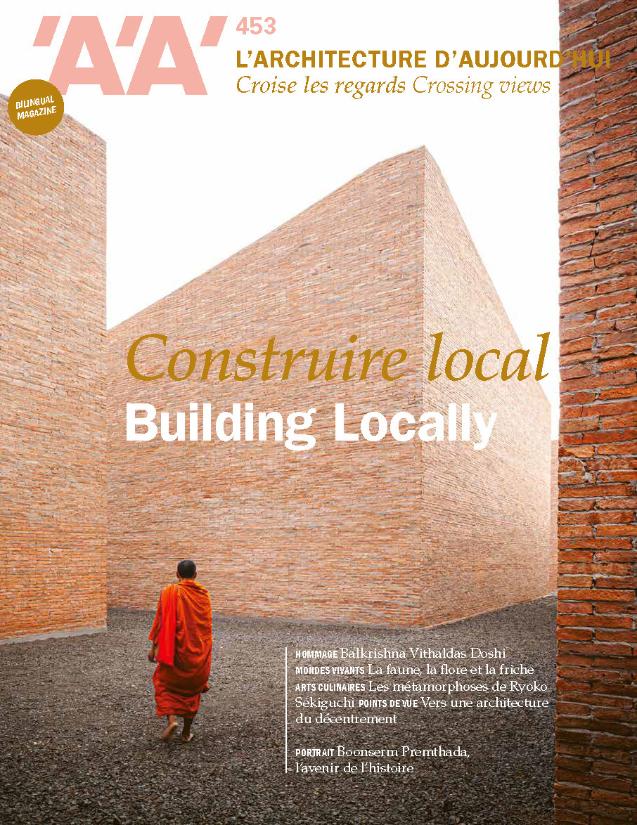 Que signifie "construire local" à l’heure d’une pénurie généralisée des ressources et matériaux de construction ? C’est sans doute l’un des termes les plus galvaudés aujourd’hui : local et, plus encore, l’expression "construire local" est de toutes les lèvres et de tous les projets. Car c’est entendu : pour diminuer un bilan carbone, réduire les émissions de gaz à effet de serre, bref lutter contre le réchauffement climatique, il convient de construire au plus près de ressources choisies, dans le cadre de circuits courts. Cela étant dit, est-ce que "construire local" est toujours le meilleur calcul en matière de bilan écologique ? Comment distinguer les entreprises réellement vertueuses des chantiers d’apparence ? AA propose une enquête aux quatre coins du monde sur l’architecture dite "locale". Au sommaire : hommage à l'architecte Balkrishna Vithaldas Doshi, Pritzker Prize 2018 ; les conseils lecture du Centre Canadien d'Architecture ; plongée dans les archives d'AA avec Jean-Philippe Hugron ; retour sur l'histoire du mythique Grand Rex avec Jean-Claude Raspiengeas ; le 13e opus des carnets du réemploi, par Vincent Laureau et Victor Meesters ; les récentes réalisations de HEMAA, Christophe Hutin et Civic Architects ; entretien avec l'écologue et botaniste Audrey Muratet à propos de ses recherches sur la biodiversité des villes, par Christelle Granja ; appropriation culturelle et localisme dans le secteur de la mode, une notion interrogée par Anastasia de Villepin ; pérégrinations photographiques en Haute-Saône avec Luc Boegly ; entretien avec l'auteure japonaise Ryoko Sekiguchi à propos du "local" en gastronomie, par Emmanuelle Borne ; portrait de l'architecte thaïlandais Boonserm Premthada dressé par Marie-Hélène Contal, directrice de l'École spéciale d'architecture ; essai d'Éric de Thoisy, directeur de la recherche de l'agence SCAU, à propos de localisme à l'échelle globale de la Terre ; l'architecture loin des grands centres urbains racontée par Valérie de Saint-Do ; l'origine des matériaux de construction étudiée par le collectif (in)visible ; entretien avec l'architecte Morgan Moinet, à propos du réemploi des matériaux de construction, par Amélie Pouzaint ; AA sur les ondes, une nouvelle rubrique en partenariat avec France Culture et l'Esprit des lieux ; les constructions locales de Joly Loiret, Anatomies d'Architecture, Wallmakers, AAU Anastas et Atelier png ; l'expertise de l'architecte Sophie Brioul pour la transformation des matières naturelles en matériaux de construction présentée par Christine Desmoulins ; une matériauthèque sur le thème du recyclage et du réemploi présenté par Lisa Agostini.