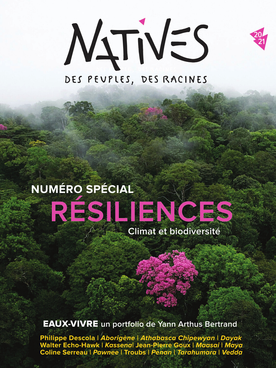 Le numéro double automne-hiver de Natives est un spécial "Résiliences", autour des questions de changement climatique et de perte de biodiversité, qui touchent en premier lieu les peuples autochtones de par leurs lieux et mode de vies. Nous explorons dans ce numéro plusieurs exemples de résiliences et de savoir autochtones qui sont autant de pistes pour une "alter-croissance", selon les mots de la cinéaste Coline Serreau, à lire dans nos pages. Notre parrain et ami Yann Arthus-Bertrand nous gratifie d'un magnifique portfolio autour du thème de "l'eau-vivre". Grand témoin de ce numéro également, l'anthropologue Philippe Descola retrace son parcours et partage sa vision d'un monde plus juste, qui réconcilie humain et non-humain, au-delà de l'opposition fallacieuse entre nature et culture.