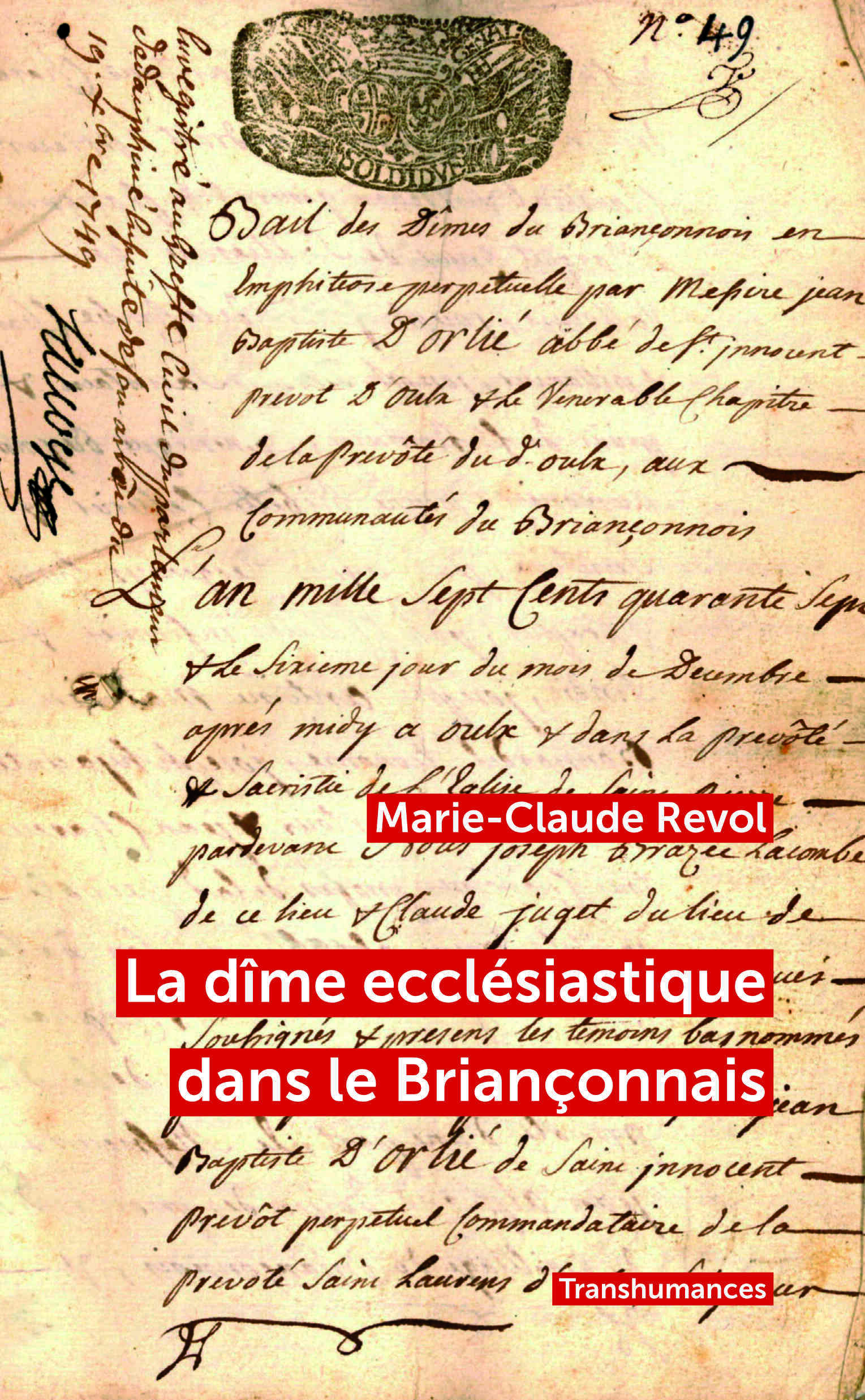 Dans la collégiale de Briançon, une inscription latine gravée dans le mur surplombe les fonts baptismaux. Elle est totalement dénuée de lien avec le baptême, puisqu’elle énonce : « Le 6 décembre 1747, la prévôté d’Oulx a remis en emphytéose perpétuelle à cette communauté les dîmes de ce lieu par concession apostolique Bulle en vigueur du 9 mai 1748. » L’inscription répond aux ordres du pape Benoît XIV qui, dans sa bulle du 9 mai 1748, a exigé : « Vous vous assurerez qu’on a érigé dans quelque endroit visible […] de chacune des communautés un monument en pierre pour servir de mémoire à la postérité de ladite emphytéose. » Quelques décennies plus tard, la Révolution française met un terme à l’emphytéose. L’inscription conserve sa fonction mémorielle. En effet, elle témoigne d’une histoire de six siècles, celle de la dîme ecclésiastique en Briançonnais.Dans le Briançonnais, la perception de la dîme est compliquée par la dissociation des pouvoirs spirituels et temporels entre évêques et abbayes, entraînant procès et conflits.À travers l’étude de cette évolution du XIIe au XVIIIe siècle, Marie-Claude Revol offre aussi un portrait vivant des communautés confrontées aux exigences financières de l’Église et aux instances chargées de trancher leurs litiges.