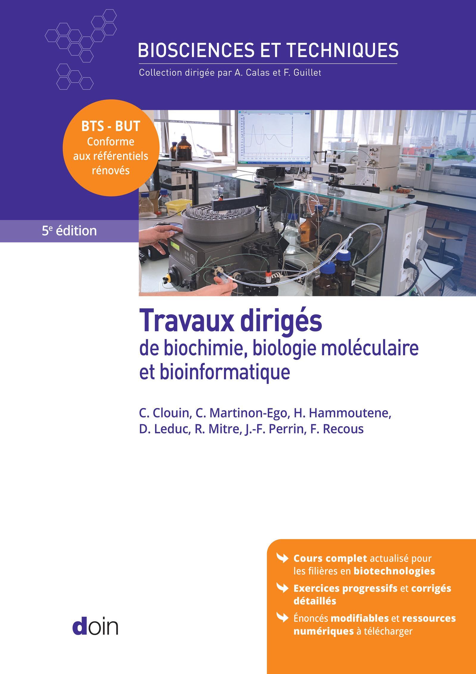 LA NOUVELLE ÉDITION DU MANUEL DE RÉFÉRENCE EN BIOLOGIE MOLÉCULAIRE, BIOTECHNOLOGIES ET BIOINFORMATIQUELa précédente édition (2013) des Travaux dirigés de biochimie, biologie moléculaire et bioinformatique, plébiscités par la communauté des professeurs de biotechnologies post-baccalauréat, a été entièrement repensée, tout en conservant ses atouts pédagogiques. Cette nouvelle édition propose un contenu actualisé, dont les principes et techniques font appel aux plus récents développements en biologie moléculaire, biotechnologies, bioinformatique et bioqualité, en conformité avec les derniers référentiels appliqués à la rentrée 2026. Une maquette claire et moderne met en valeur le cours complet illustré et ses exercices progressifs et gradués. Les professeurs de biotechnologies bénéficient avec cet ouvrage de tout ce dont ils ont besoin pour préparer leurs cours, animer leurs classes et entrainer leurs élèves vers la réussite des examens.L'ouvrage est accompagné d'un site compagnon sécurisé mettant à disposition de nombreuses ressources numériques : énoncés modifiables de tous les exercices, fichiers logiciels, supports de travail pour la vidéoprojection en classe (graphiques, tableaux, etc.).La 5e édition de ce manuel pédagogique de référence est incontournable pour les enseignants et les étudiants en biotechnologies des filières post-baccalauréat.