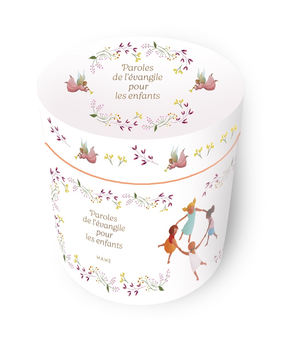 Cette élégante boîte contient 52 cartes à piocher. Chaque semaine, elle permettra aux enfants de découvrir une phrase de l'Évangile adaptée à leur âge et de faire une petite prière qui s'en inspire.