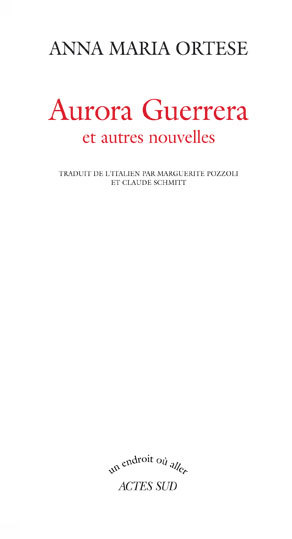 Je ne sais ce qu'il est advenu d'Aurora Guerrera. Il y a des personnages dont on perd très vite toute trace, et cela non parce qu'ils valent moins que d'autres, mais parce que leur place dans le monde est vraiment la dernière, pas plus grande ni plus considérable que celle occupée par une souris ou un oiseau. A y bien penser, Aurora était justement à mi-chemin entre la souris et l'oiseau, elle avait un je ne sais quoi de sordide et de pur à la fois, de torve et de net, elle était menue comme ces bestioles, avec une grâce violente, un peu obscure. Son pas était tantôt glissement, tantôt vol. Son regard, toujours étincelant et sombre, fixé sur des choses lointaines ; parfois, mais très rarement, il s'adoucissait. De sa voix, je ne savais rien, jusqu'au jour dont je parle dans ce récit. A. M. O. Née à Rome en 1914, Anna Maria Ortese est décédée en 1998. Chez Actes Sud ont déjà paru Là où le temps est un autre (1997), Corps céleste (2000), Le Silence de Milan (2001), L'infante ensevelie (2003), Le Monaciello de Naples (2003), Les Ombra (2004), Terreurs d'été (2004) et Tour d'Italie (2006).