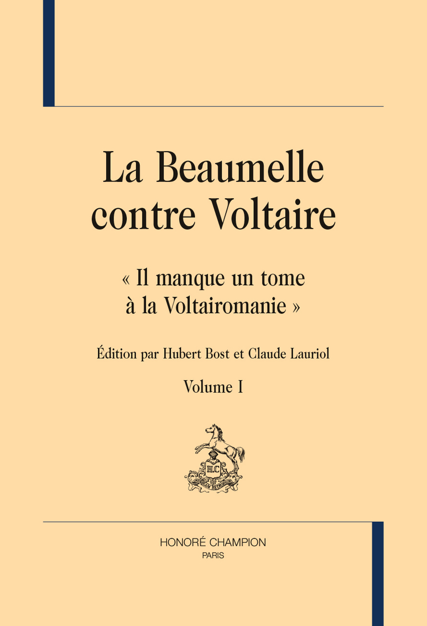 La Beaumelle (1726-1773), admirateur critique du grand poète Voltaire dès son adolescence, a été un adversaire d’autant plus redouté que sa plume acérée puisait ses arguments dans une vaste érudition. Malgré les menées de Voltaire qui pendant vingt ans le dénonce aux autorités pour le faire taire, ce polémiste-né ne s’en est jamais laissé compter : « En colère, de sang-froid, vous me trouverez toujours sur vos pas ». Cette édition, qui rassemble les écrits que La Beaumelle a consacrés à la personne et aux oeuvres de Voltaire, permet de contrebalancer la caricature que celui-ci a réussi à imposer de son jeune et intrépide adversaire décédé quelques années avant lui.On trouvera dans le tome I :– les notes critiques de La Beaumelle sur le Siècle deLouis XIV (1753) et sa cinglante Réponse au Supplémentdu Siècle de Louis XIV (1754) ;– le texte du manuscrit inédit « Voltaire à Berlin », rédigé en1753-1754 ;– Les Lettres de M. de La Beaumelle à M. de Voltaire (1763),refonte largement augmentée de sa Réponse et lesbrouillons de lettres inédites de 1767 à Voltaire sur unprojet d’édition critique de ses oeuvres.On trouvera dans le tome II :– la Lettre de M. de La Beaumelle à MM. Philibert et Chirol(1770) ;– l’édition annotée de la Henriade par La Beaumelle dans sesdeux versions : La Henriade avec des remarques (1769-1770) et le Commentaire sur la Henriade (1775)posthume ;– un choix de notes volantes manuscrites prises par LaBeaumelle en vue d’une édition annotée des œuvres deVoltaire ;– l’index général.