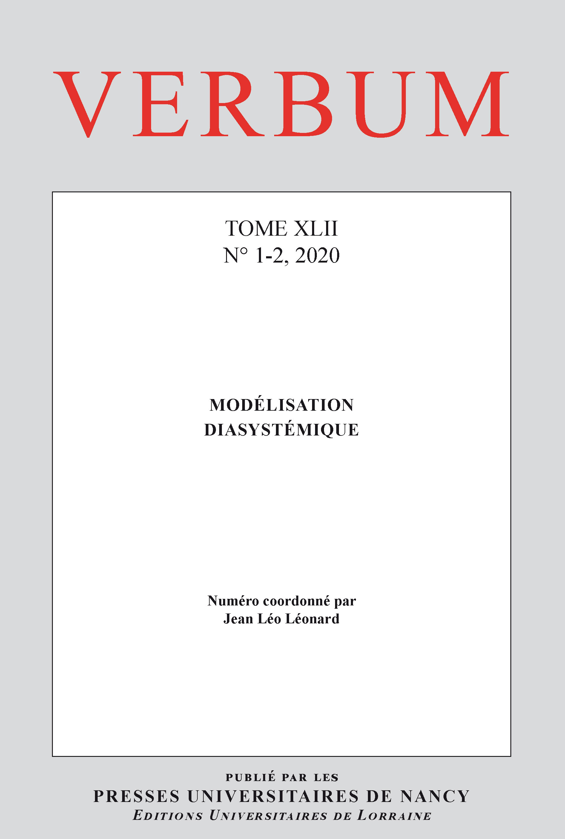 Verbum, Tome XLII, n° 1-2/2020