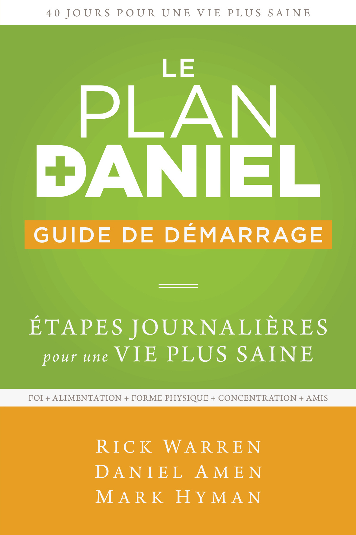 Des milliers de personnes ayant vu leur style de vie transformé grâce aux bienfaits du Plan Daniel nous ont envoyé leurs témoignages, ce guide s’inspire de leurs réponses: il présente des outils et des ressources éprouvés. Ce guide vous accompagnera tout au long de vos 40 jours de voyage en vue d’améliorer votre santé. Vous découvrirez les fondements qui vous permettront de retrouver la vitalitédans tous les domaines de votre vie. Les cinq piliers du Plan Daniel sont la foi, l’alimentation, la forme physique, la concentration et les amis. Points forts: + un format de poche + une aide téléchargeable incluse + des étapes pratiques journalières + des conseils simples, concrets, motivants Thèmes: * la santé * l'alimentation * la foi * l'amitié