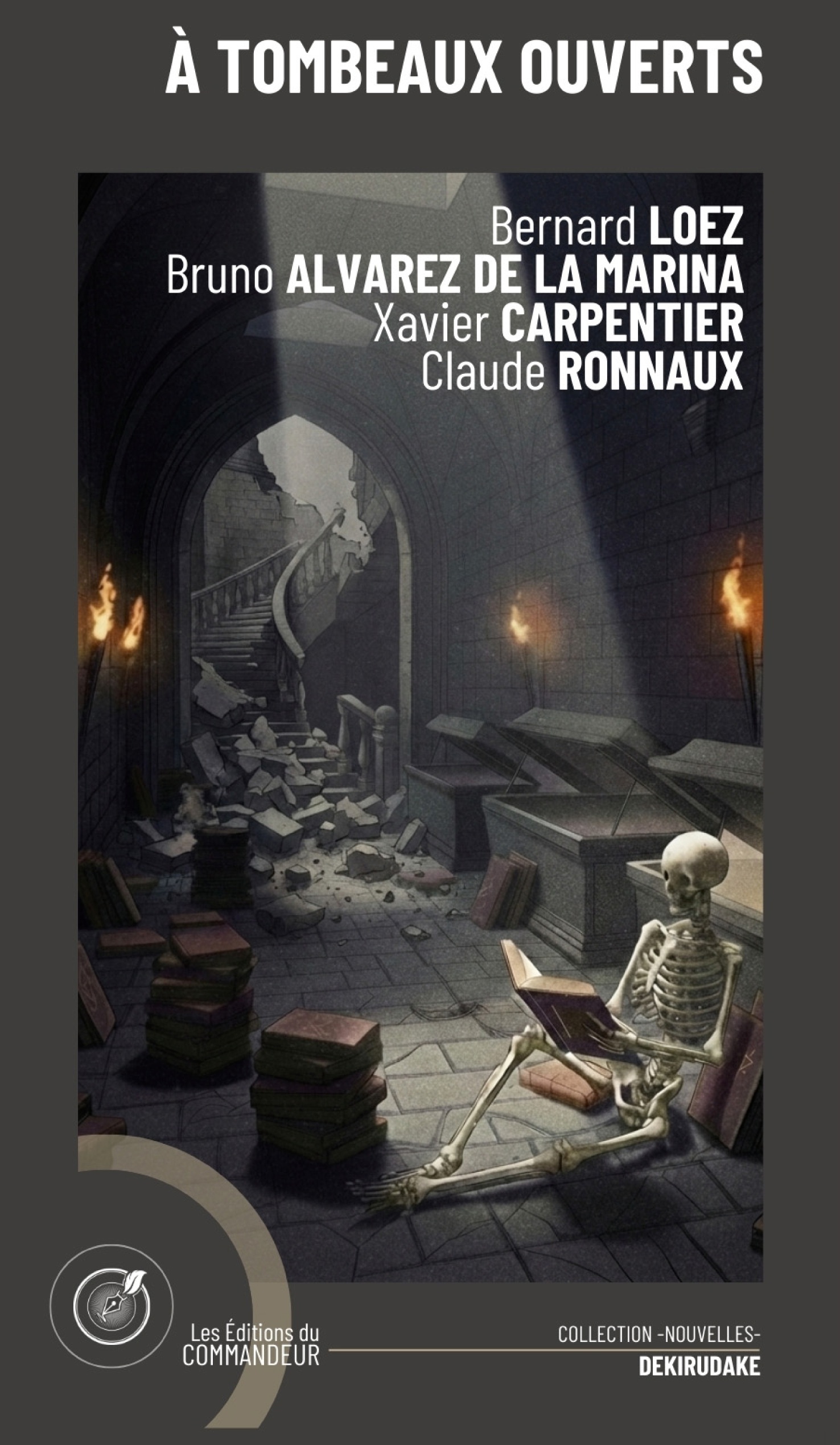 CADAVRES EXQUIS (par Bernard LOEZ)A quoi, à qui, peuvent servir ces quelques fragments de manuscrits retrouvés, tombeaux de toutes les hésitations et de tous les repentirs ? Ces confettis, gribouillés par d'anciens piliers du café de Flore devenus écrivains célèbres, contiennent-ils la graine d'un chef d'oeuvre posthume, une pensée égarée dans ses propres méandres, ou une confession secrète, impubliable, retenue au dernier moment ? La main innocente qui les recueille saura-t-elle rassembler ces mots dans le bon ordre, ou dans un autre ? Et ce premier lecteur va-t-il y trouver son chemin de Damas, et faire revivre ainsi le plus exquis des cadavres ? LES ALYSCAMPS (par Bruno ALVAREZ DE LA MARINA) Jean est taphophile, un bien vilain mot pour souligner son goût pour les allées bordées de tombes et de chrysanthèmes. Ses amis comprendront-ils un jour cet étrange intérêt ? C'est au cours d'une promenade dans le cimetière de l'Est, à Lille, qu'il rencontre Diane. Elle partage la même passion et, de cimetière en cimetière, nous entraîne bientôt avec lui dans un voyage au coeur de l'humanité car, pour elle, les tombes sont des livres ouverts. Un peu comme les sarcophages de l'allée des Alyscamps, à Arles...IL VIAGGIO A NAPOLI (par Xavier CARPENTIER)-Voir Naples et mourir-, quel beau programme pour Marcus, qui compte bien profiter de ses vacances en famille en Italie pour en apprendre plus sur les mythes et les traditions de la ville. Mais la découverte de la Smorfia, cette science locale des nombres, l'entraine bientôt dans les bras d'une inconnue énigmatique pour un périple déstabilisant aux pieds du Vésuve où les rêves et la réalité, le passé et le présent se confondent.MÊME PAS MORT ! (par Claude RONNAUX)La mort n'est plus l'ultime étape. La frontière du tombeau cède. Un scientifique fantasque découvre comment reloger la psyché dans l'os. La société Memento Ossia industrialise cette éternité minérale. Renaître sans chair, délivré de la souffrance : est-ce survivre, ou cesser d'être humain ?