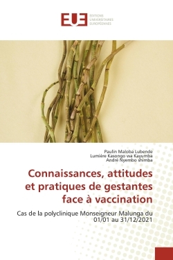 La vaccination demeure l'unique moyen par lequel on peut lutter contre les maladies virales, ainsi, nous avons conduit une étude sur les connaissances, attitudes et pratiques de gestantes face a la vaccination dans le but d'évaluer le niveau de connaissances de la population sous examen.Il s'agit d'une étude descriptive transversale prospective, l'échantillonnage est probabiliste, l'échantillon est exhaustif structuré sur 120gestantes, le questionnaire et l'interview ont été nos techniques de collecte de données,Après investigations, nous relevons que certaines gestantes ne connaissent pas le vaccin, d'autres ne maîtrisent pas le calendrier vaccinal.