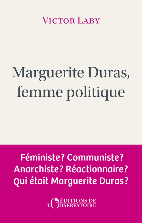 Dans quel camp écrivait Duras ?Résistante, communiste, gauchiste, mitterrandienne… mais aussi réactionnaire, féministe, anti-féministe selon ses détracteurs. Marguerite Duras défie toutes les catégories politiques. Était-elle de gauche, d’extrême gauche, de droite ? Cette question, qui traverse son œuvre et sa vie, révèle la complexité d’un engagement qui ne se laisse enfermer dans aucune étiquette.De son adhésion au PCF dans l’après-guerre à ses prises de position sur Mai 68, de ses écrits sur la question algérienne à son ralliement au mitterrandisme, Victor Laby retrace le parcours politique insaisissable de l’auteure du Barrage contre le Pacifique. Loin des caricatures qui en font tantôt une trublion destructrice, tantôt une opportuniste, cette biographie intellectuelle révèle comment Duras a constamment réinventé le réel pour mieux le dénoncer, préférant la subjectivité du témoignage aux romans à thèse.Comment comprendre une femme qui peut être à la fois révolutionnaire et conservatrice, progressiste et nostalgique ? S’appuyant sur une analyse inédite de la presse du XXe siècle et sur la redécouverte du tout premier texte publié par Duras, cette enquête explore les liens entre écriture et engagement, et pose une question essentielle : qu’a signifié, pour Marguerite Duras, écrire contre et écrire avec le monde ?