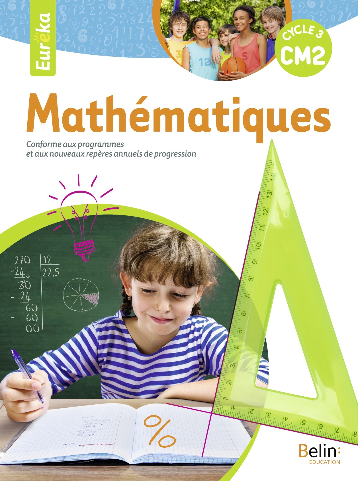 Conforme aux programmes et aux nouveaux repères annuels de progression La collection Eurêka s'appuie sur une démarche pédagogique claire et structurée qui intègre les mathématiques dans la vie quotidienne des élèves. • 120 séances de calcul mental pour automatiser les techniques et les stratégies mathématiques. • De nombreux problèmes avec des fiches méthode pour accompagner l'élève dans la résolution. • Des exercices concrets et progressifs proches des situations de la vie courante. • Des évaluations systématiques de chaque compétence au programme. • De nombreuses activités de réinvestissement pour s'approprier et consolider les notions.