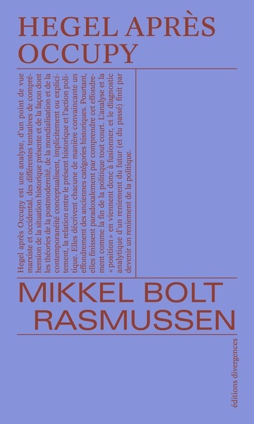 Hegel après Occupy est une analyse, d'un point de vue marxiste et occidental, des différentes tentatives de compréhension de la situation historique présente et de la façon dont les théories de la post-modernité, de la mondialisation et de la contemporanéité conceptualisent la relation entre le présent historique et l'action politique. Elles décrivent chacune de manière convaincante un effondrement des anciennes catégories historiques. Pourtant, elles finissent paradoxalement par comprendre cet effondrement comme la fin de la politique tout court. L'analyse et la « position » en viennent donc à fusionner, et le diagnostic analytique d'un reniement du futur (et du passé) finit par devenir un reniement de la politique.