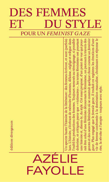 Un spectre hante l'histoire de la littérature : des femmes écrivent, et sont (parfois) lues. L'histoire, s'écrivant de mémoire d'hommes, délaisse, néglige et relègue dans l'oubli les productions des femmes. Toujours ramenés au témoignage, si possible doloriste, et critiqués parce que « victimaires », les textes féministes ont pourtant une histoire et, disons-le, du style. Cet essai propose, d'un point de vue qui pourrait être celui d'une féministe découvrant le féminisme, un parcours à travers des genres et des oeuvres littéraires où se construit quelque chose comme un feminist gaze. Plus engagé que le female gaze, il traduit en registres les émotions d'une vie de femme confrontée à la domination masculine, choisissant en réponse le rire, la révolte et l'utopie - toujours avec style.