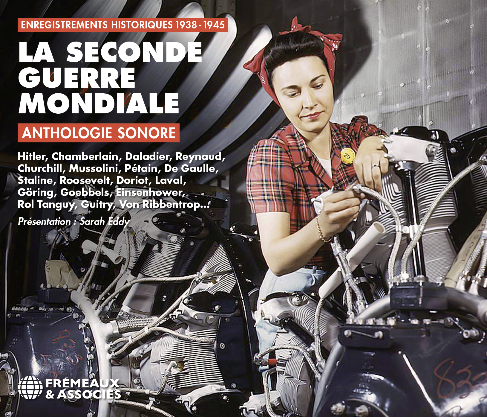 La Seconde Guerre mondiale demeure le conflit armé le plus vaste et le plus dévastateur du XXe siècle. Par son intensité, sa démesure et son ampleur planétaire, elle a profondément bouleversé l’ordre du monde. Conflit total s’étendant aux quatre coins du globe, elle reste sans équivalent par le nombre de victimes et par l’ampleur des atrocités commises. Elle interroge en profondeur les rapports humains et les fondements philosophiques et politiques des sociétés modernes : totalitarisme et démocratie, colonialisme et droit des peuples à disposer d’eux-mêmes. Réalisée par Jean-Baptiste Mersiol, cette anthologie propose un parcours chronologique à travers un florilège des archives sonores les plus saisissantes de la guerre : allocutions radiodiffusées, bulletins d’information, reportages, programmes et communiqués officiels. Les sources en langues étrangères ont été traduites en français et sont interprétées par Sarah Eddy. Le conflit s’y déploie au fil des discours des grandes figures de l’époque — Churchill, Staline, Hitler, De Gaulle, Roosevelt — mais aussi à travers le prisme des actualités. Une immersion puissante au coeur de l’Histoire, révélant à la fois l’intensité du conflit et la fracture morale et métaphysique engendrée par ses atrocités. Patrick FRÉMEAUXCD1 - 1938-1941 : 1. INTRODUCTION. 1938 : 2-3. ADOLF HITLER – CONGRÈS NAZI, NUREMBERG • 4-5. NEVILLE CHAMBERLAIN • 6-7. EDOUARD DALADIER. 1939 : 8-9. LÉOPOLD III • 10-11. EDOUARD DALADIER • 12-13. ADOLF HITLER • 14. APPEL POUR LES BONS D’ARMEMENT • 15. SOLDATS BRITANNIQUES EN FRANCE • 16-17. CHARLES LINDBERGH • 18. INFORMATIONS. 1940 : 19. PAUL REYNAUD • 20 21. INFORMATIONS BELGES • 22. PUBLICITÉ POUR LES PÂTES LUSTUCRU • 23-24. ALERTE BOMBARDEMENT SUR RADIO CITÉ • 25-26. APPEL AUX BELGES DE LONDRES – BBC • 27-28. HUBERT PIERLOT • 29-30. NEVILLE CHAMBERLAIN • 31-32. WINSTON CHURCHILL • 33-34. PAUL REYNAUD • 35-36. BENITOMUSSOLINI • 37-38. PAUL REYNAUD • 39-40. COMMUNIQUÉ DE LA RADIO ALLEMANDE • 41-42. ELISABETH, REINE D’ANGLETERRE • 43-44. MARÉCHAL PÉTAIN • 45. MARÉCHAL PÉTAIN • 46-47. NÉGOCIATIONS D’ARMISTICE • 48-49. COMPTE RENDU TÉLÉPHONIQUE • 50-53. GÉNÉRAL DE GAULLE • 54-55. RECHERCHE DES ENFANTS PERDUS • 56. GÉNÉRAL DE GAULLE (2) • 57-58. WINSTON CHURCHILL • 59-60. LE BLITZ • 61-62. WINSTON CHURCHILL • 63-64. MARÉCHAL PÉTAIN. 1941 : 65-66. WINSTON CHURCHILL • 67-68. JOSEPH STALINE. CD2 - 1941-1943 : 1-2. CAMPAGNE DU V • 3-4. MANIFESTATION L.V.F • 5-6. ANNONCE DE L’ATTAQUE DE PEARL HARBOR • 7-8. FRANKLIN D. ROOSEVELT – WASHINGTON • 9-10. MARÉCHAL PÉTAIN – MESSAGE DE NOEL • 11-12. GÉNÉRAL DE GAULLE – MESSAGE DE NOEL. 1942 : 13-14. BOMBARDEMENT DE BOULOGNE BILLANCOURT • 15-16. GÉNÉRAL J.WAINWRIGHT • 17. RADIO VICHY – INFORMATIONS • 18 19. JACQUES DORIOT • 20-21. MARÉCHAL PÉTAIN • 22-23. PHILIPPE HENRIOT • 24. RADIO LONDRES – INFORMATIONS • 25-26. PIERRE LAVAL • 27-28. MARÉCHAL ROMMEL • 29-30. PIERRE LAVAL • 31-32. ANDRÉ LABARTHE • 33-34. TÉMOIGNAGE D’UN SOLDAT RESCAPÉ DE DIEPPE • 35-36. INFORMATIONS • 37. MARÉCHAL PÉTAIN • 38. JOSEPH DARNAND • 39-40. PIERRE LAVAL • 41-42. ADOLF HITLER • 43-44. FRANKLIN D. ROOSEVELT • 45. AVERTISSEMENT AVANT ACTUALITÉS CINÉMATOGRAPHIQUES • 46. AVERTISSEMENT DANS LES SALLES DE CINÉMA • 47-48. MARÉCHAL PÉTAIN. 1943 : 49-50. GÉNÉRAL DE GAULLE • 51-52. HERMANN GÖRING • 53. RADIO BERLIN – SLOGAN DE COLLABORATION • 54-55. RADIO BERLIN – INFORMATIONS • 56-57. COMMUNIQUÉ DE RADIO ALLEMANDE • 58-59. JOSEPH GOEBBELS • 60-61. TÉMOIGNAGES DE TRAVAILLEURS FRANÇAIS EN ALLEMAGNE • 62-63. HUBERT PIERLOT • 64-65. RADIO ROME – COMMUNIQUÉ RADIO • 66-67. DÉPART DES WAFFEN S.S FRANÇAIS • 68-69. ANDRÉ PHILIP – RADIO ALGER • 70-71-72. HONNEUR ET PATRIE, LES FRANÇAIS PARLENT AUX FRANÇAIS - RADIO LONDRES • 73-74. POÈME ANTI DE GAULLE ET DARLAN – RADIO PARIS • 75-76. GÉNÉRAL DE GAULLE. CD3 - 1944-1945 : 1944 : 1-2. RADIO LONDRES • 3-4. LÉON DEGRELLE • 5-6. RADIO PARIS MENT (ORIGINAL) – RADIO LONDRES • 7. PIERRE DAC – BAGATELLE SUR UN TOMBEAU • 8. PHILIPPE HENRIOT • 9-10.11. RADIO LONDRES – MESSAGES PERSONNELS • 12-13. PHILIPPE HENRIOT • 14-15. ANNONCE DU DÉBARQUEMENT – RADIO LONDRES • 16-17. GÉNÉRAL EINSENHOWER • 18. REPORTAGE À BORD DU ANCON • 19. AVERTISSEMENT RADIO LONDRES • 20. EMISSION SATIRIQUE – RADIO PARIS • 21-22. GÉNÉRAL COLLINS • 23-24. PHILIPPE HENRIOT • 25-26. PIERRE LAVAL • 27. BATAILLE DE CARPIQUET • 28-29. GÉNÉRAL DE GAULLE • 30-31. REPORTAGE RADIO PARIS • 32. JEAN-HÉROLD PAQUIS • 33. RADIO PARIS – SPEAKER • 34-35. GÉNÉRAL LECLERC • 36-37. COLONEL ROL TANGUY • 38. BARRICADES À MONTMARTRE • 39-40. GÉNÉRAL DE GAULLE • 41-42. APPEL AUX CURÉS • 43. PIERRE CRENESSE • 44. ARRIVÉE DES TROUPES • 45. IMPRESSIONS DES PARISIENS • 46-47. RATIONNEMENT DES CIVILES EN ITALIE • 48-49. GÉNÉRAL DE GAULLES • 50. REPRISE DU MÉTRO • 51. CÉRÉMONIE À NOTRE DAME • 52. VOL ET EXPLOSIONS DE V1. 1945 : 53-54. ADOLF HITLER – DERNIÈRE ALLOCUTION • 55 56. GÉNÉRAL DE LATTRE DE TASSIGNY • 57-58. GÉNÉRAL KOENIG • 59. SOLDATS DE LA 2E DIVISION BLINDÉE • ...