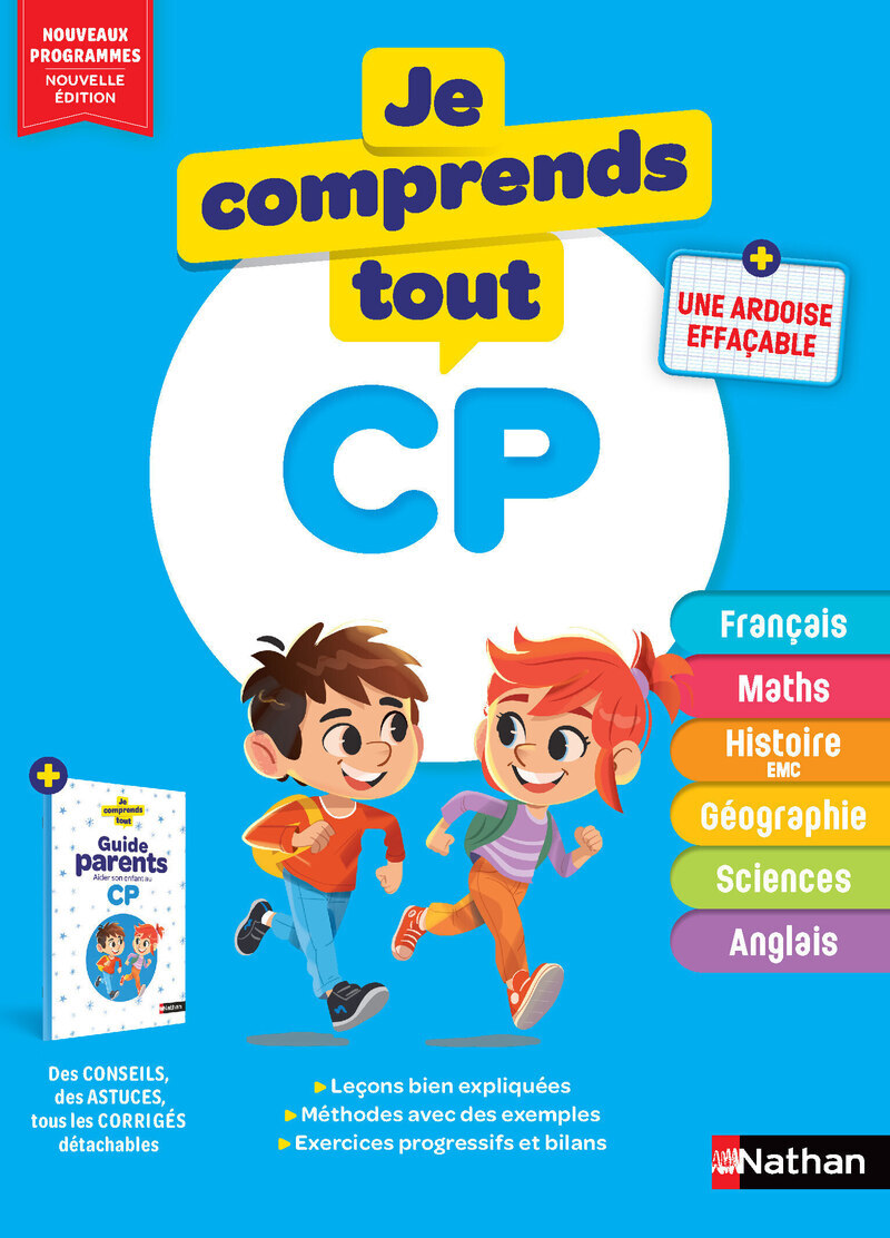 Un cahier de soutien pour réviser toutes les matières du CP et spécialement conçu pour le travail à la maison. Tout le programme de CP à la portée de l'enfant et des parents, pour une année scolaire réussie. Les leçons bien expliquées, des méthodes avec des exemples, des exercices progressifs et des bilans. • Pour les enfants : Pour chaque leçon, une BD avec des mascottes permet d'entrer de façon ludique dans chaque notion du programme, un mémo de l'essentiel à retenir, une méthode pour mettre en pratique la leçon, des exercices progressifs. • Pour les parents : un guide parents complet qui donne toutes les informations sur les programmes et des conseils pratiques pour aider votre enfant. Les corrigés de tous les exercices. Toutes les matières du programme de CE1 : Français, Maths, Histoire (EMC), Géographie, Sciences, Anglais.
