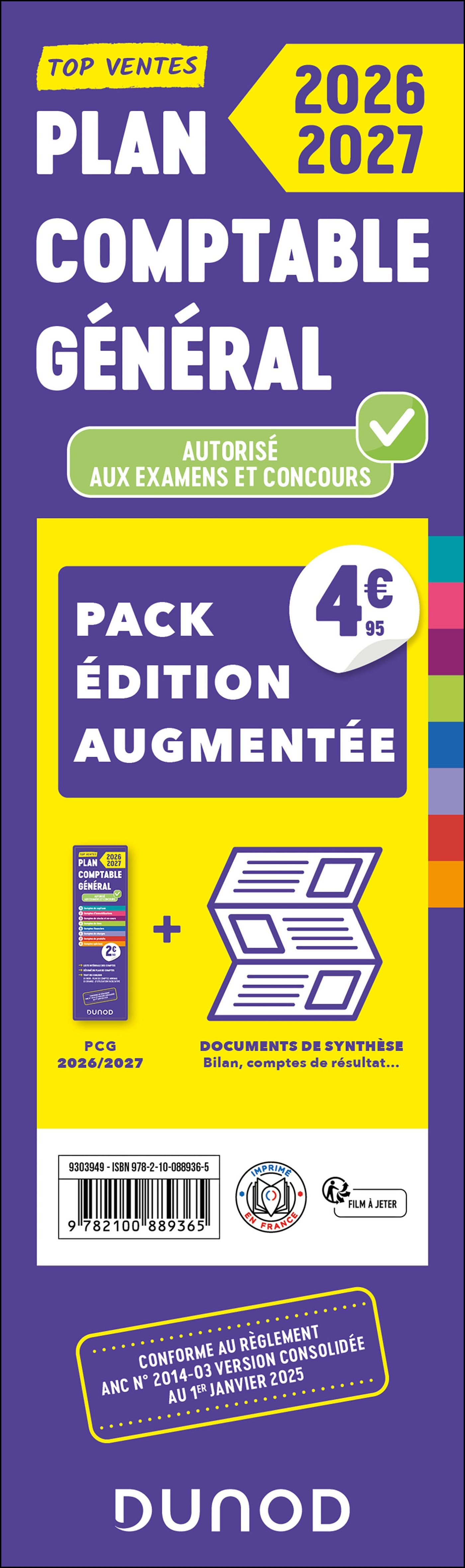 Le pack édition augmentée ** 2 EN 1 ** contient le PCG 2025-2026 et les documents de synthèse.Le nouveau Plan Comptable Général 2025-2026 : ? Nouveau format dépliant en accordéon !? PCG à jour du nouveau règlement sur la modernisation des états financiers (ANC n°2022-06) ;? Liste intégrale des comptes, avec repérage par couleur ;? Distinction pratique des différents systèmes et des comptes facultatifs ;? Autorisé aux examens et concoursLes documents de synthèse avec liaisons entre comptes et postes :? Sur dépliant séparé (non autorisé aux examens et concours)? Bilan et compte de résultat (système de base, abrégé)? Tableau complémentaires de l'annexeLes plus : + L'essentiel en bref, mise à jour annuelle+ Indispensable pour les étudiants (BTS et IUT tertiaires, DCG, université, école de commerce...) et professionnels+ Praitque pour tous les professionnels (comptables, experts-comptables, auditeurs, gestionnaires d'entreprises)Dunod, leader de l'expertise comptable, édite le PCG depuis plus de 30 ans, soit plus de 600 000 ex vendus ! ***Cette édition du PCG est à jour des derniers règlements de l’ANC***