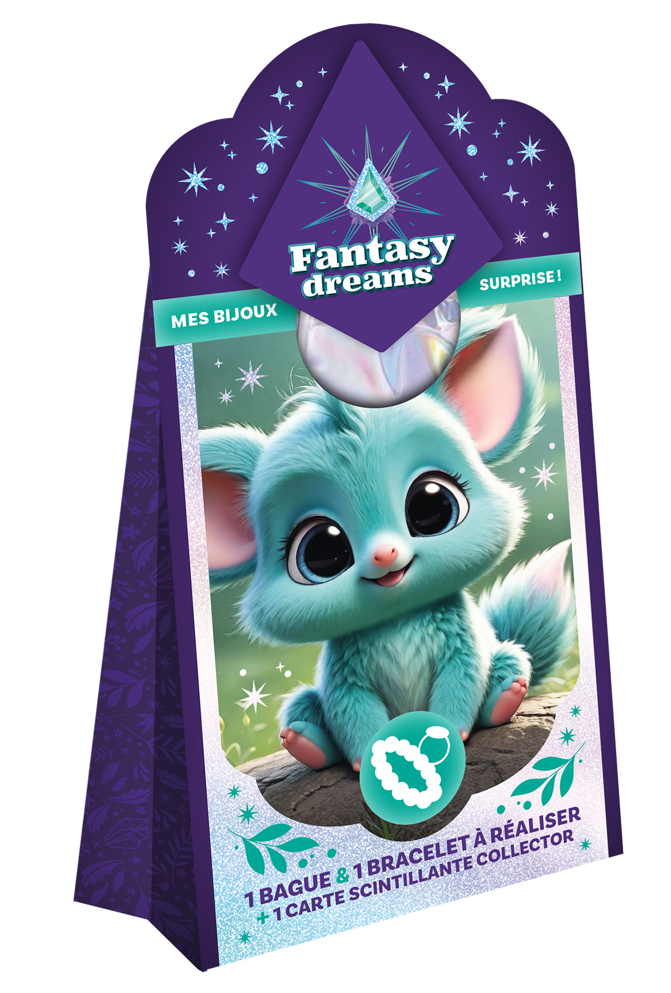 Cette boîte mystère renferme un bracelet et une bague à confectionner, mais aussi une carte scintillante représentant un animal trop mignon.Bloom, Lumi, Tahia ou Nova ? Cœur, flocon, étoile ou fleur ? À chaque créature son symbole et des bijoux différents.