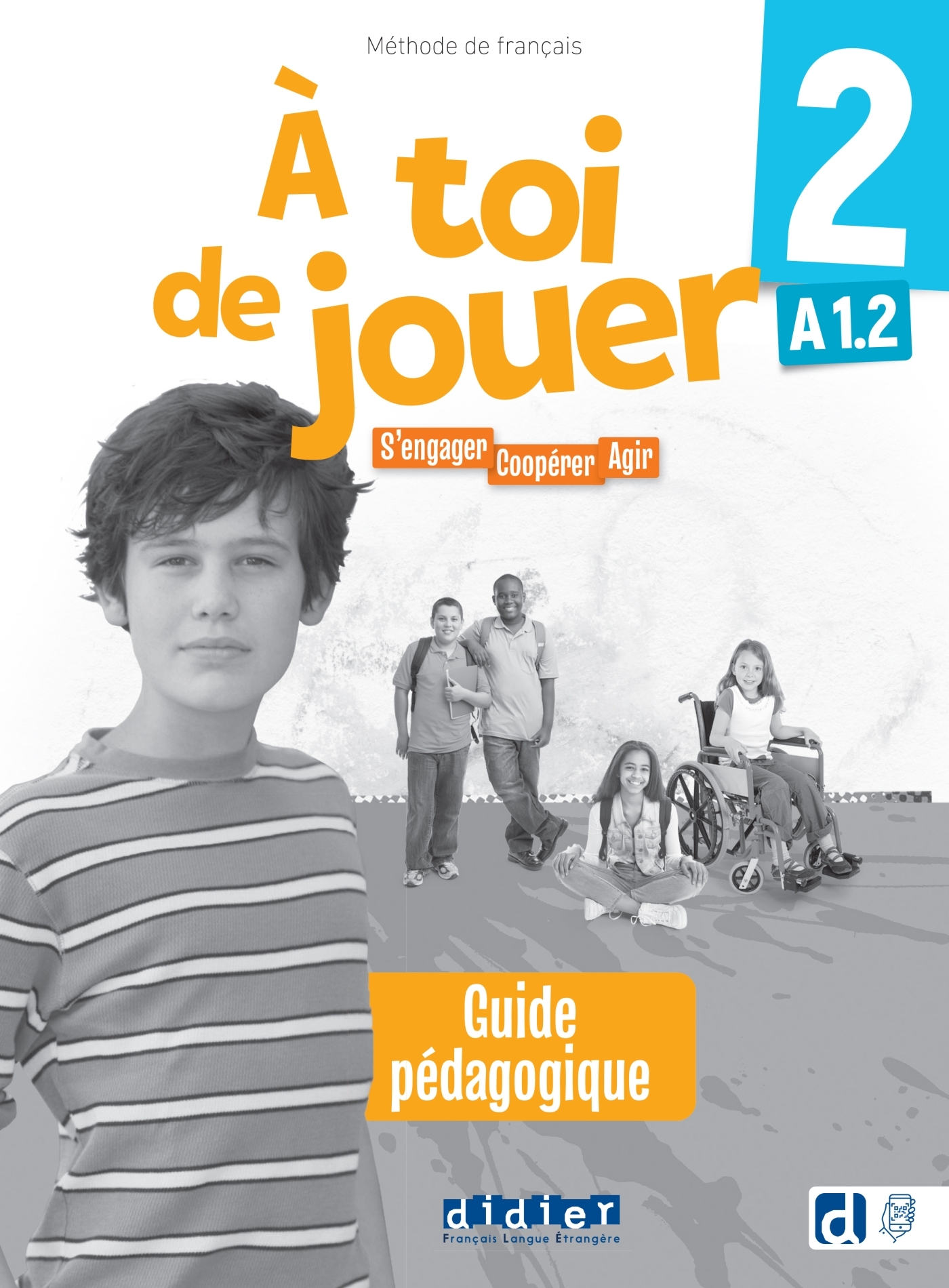 À toi de jouer, la méthode de français langue étrangère destinée aux adolescents pour s’engager, coopérer et agir !La collection comprend 4 niveaux (du A1.1 au A2.2). Découvrez un extrait du guide pédagogique À toi de jouer 2 (niveau A1.2) ici : https://bit.ly/3ZCIJBl La méthode À toi de jouer, c’est :un « livre + cahier » avec une structure claire pour un lien efficace entre travail en classe et en autonomie ;une approche progressive et guidée de la grammaire et du lexique ;un grand nombre d’activités en groupes et des jeux pour favoriser la production et la coopération en classe ;une dimension résolument citoyenne : Atelier citoyen, Culture et compétences et Boite à idées.À toi de jouer, c’est également une méthode riche en vidéos pour une immersion dans la langue :une vidéo lexicale en images en début d’unité ;un dialogue déclencheur en vidéo pour suivre les aventures de cinq adolescents et de leur professeur ;des vidéos sur des aspects culturels francophones pour s’ouvrir au monde. Le guide pédagogique À toi de jouer 2 (niveau A1.2) propose :des conseils pratiques pour la mise en place des activités en classe ;des activités de prolongement pour aller plus loin et favoriser les interactions ;des éclairages cultuels pour enrichir les thématiques abordées ;les corrigés complets du livre + cahier ;les transcriptions des dialogues et des vidéos ;trois tests par unité, pour s’adapter aux différents profils d’apprenant(e). À noter : ce guide pédagogique est également téléchargeable gratuitement avec un compte professeur sur la fiche du guide sur www.didierfle.com/a-toi-de-jouer. Avec le guide pédagogique À toi de jouer 2, la méthode propose :le livre + cahier de l’élève correspondant ;un accès direct aux ressources en flashant les pages du livre + cahier avec l’application didierfle.app ;des activités interactives supplémentaires et les ressources (audios et vidéos) accessibles via le site compagnonwww.didierfle-mesressources.com. Également disponible à la vente sur la eboutique.didierfle.com : le livre + cahier numérique ;le pack numérique enseignant (livre + cahier + guide pédagogique)Pour accéder directement à votre ouvrage et à ses ressources sur la plateforme Educadhoc et bénéficier de toutes les fonctionnalités de celle-ci.