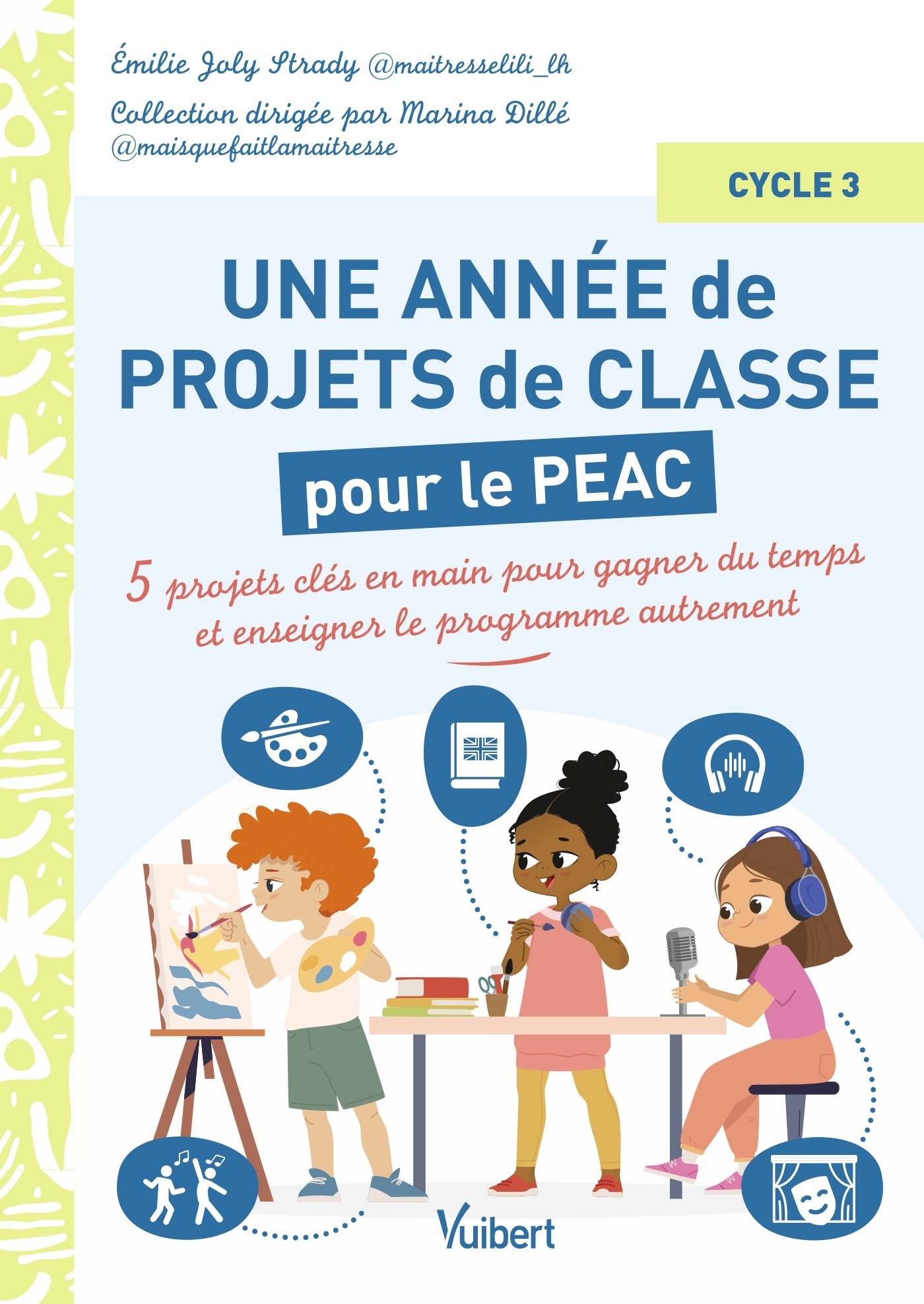 Des projets clés en main pour faire vivre à vos élèves une véritable expérience artistique et culturelle.Conçu pour les professeurs des écoles, débutants comme expérimentés, cet ouvrage propose 5 projets artistiques transdisciplinaires, faciles à mettre en place et entièrement testés en classe. Pensés pour le cycle 3 et conformes aux programmes, ils permettent d’intégrer simplement le Parcours d’Éducation Artistique et Culturelle dans votre pratique quotidienne.Devenir un artiste et créer un musée de la classe, réaliser un spectacle de danse pour voyager dans le temps, concevoir un livre illustré en anglais, enregistrer un podcast littéraire sur le thème de la mythologie, jouer une pièce de théâtre sur le thème de l’espace... Chaque projet devient une aventure collective au service des apprentissages.Pour vous accompagner pas à pas :une carte mentale claire des enjeux et des disciplines mobilisées ;une fiche séquence structurée ;toutes les séances détaillées ;des ressources complémentaires et des conseils pratiques ;du matériel téléchargeable prêt à l’emploi.Émilie Joly Strady, l’autrice, enseigne en cycle 3 depuis 2008, plus particulièrement en CM1-CM2. Elle est aussi blogueuse et instagrameuse (@maitresselili_lh).Directrice de cette collection, Marina Dillé est professeure des écoles et maîtreformatrice, mais aussi blogueuse et instagrameuse (@maisquefaitlamaitresse).
