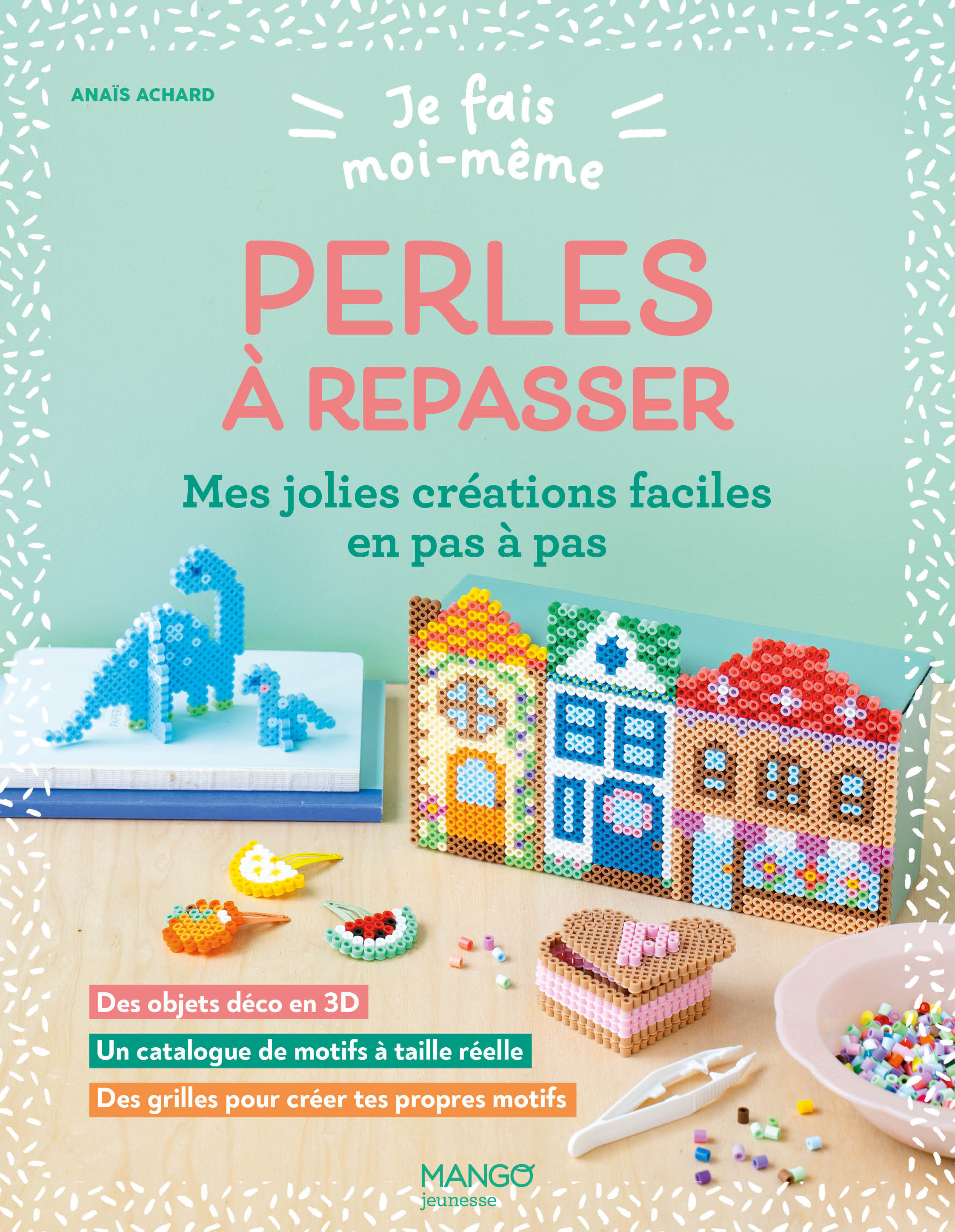 Crée d’incroyables objets en perles à repasser !Joli tableau, boîte à bijoux, porte-clés d’amitié, et même guirlande phosphorescente… Il te suffira de jolies perles à repasser et de nos super explications en pas à pas photos pour réaliser 10 créations facilement.Amuse-toi à créer des objets, puis lance-toi dans la réalisation de modèles inédits grâce à une bibliothèque de motifs. Retrouve aussi des grilles vides à personnaliser toi-même, pour laisser libre cours à ton imagination et créer tes propres motifs !