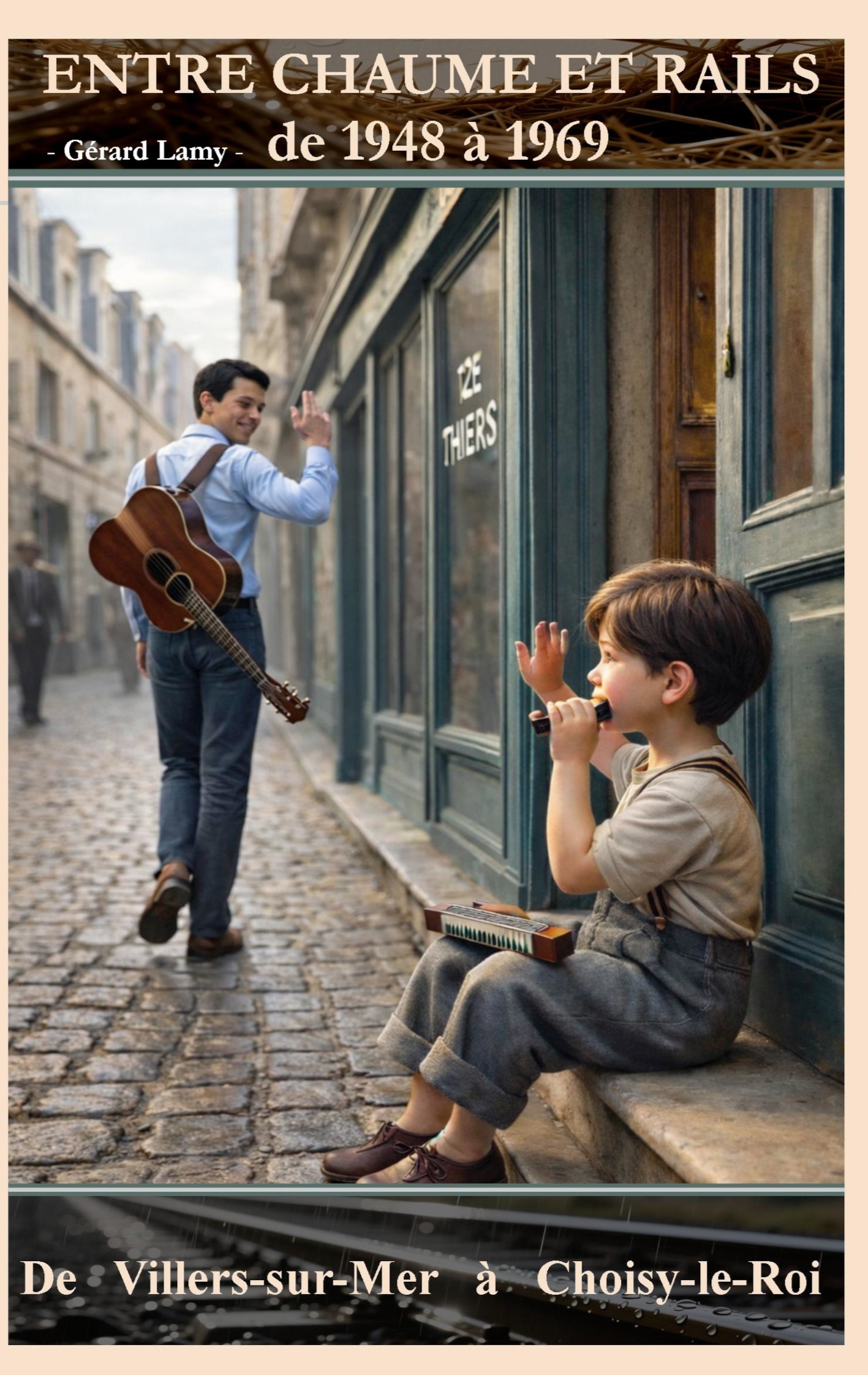 De Villers-sur-Mer à Choisy-le-Roi, de 1948 à 1969, Gérard Lamy trace le portrait d'une époque où l'enfance se construit entre toit de chaume et murs de brique. Observateur silencieux puis jeune homme éveillé par les rires des "rapatriés d'Algérie", il capte les gestes infimes : les exigences excentriques de Mamy, les rails qui chantent, la première guitare serrée contre lui.Ce n'est pas du souvenir, c'est de la vérité racontée à voix basse. Entre fête foraine, bal de quartier et mensonges tendres, il apprend à rire, à aimer, à exister.Un regard échangé, un été, suffit à tout changer. Précis, sobre et vibrant, ce récit nous ramène à ce que les années soixante ont de plus intime : leur capacité à faire de peu, une vie entière.