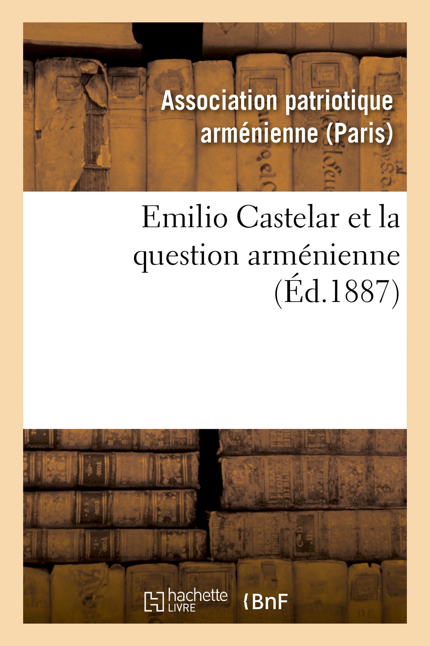 Emilio Castelar et la question arménienne / Association patriotique arménienneDate de l'édition originale : 1887Le présent ouvrage s'inscrit dans une politique de conservation patrimoniale des ouvrages de la littérature Française mise en place avec la BNF. HACHETTE LIVRE et la BNF proposent ainsi un catalogue de titres indisponibles, la BNF ayant numérisé ces oeuvres et HACHETTE LIVRE les imprimant à la demande. Certains de ces ouvrages reflètent des courants de pensée caractéristiques de leur époque, mais qui seraient aujourd'hui jugés condamnables. Ils n'en appartiennent pas moins à l'histoire des idées en France et sont susceptibles de présenter un intérêt scientifique ou historique. Le sens de notre démarche éditoriale consiste ainsi à permettre l'accès à ces oeuvres sans pour autant que nous en cautionnions en aucune façon le contenu. Pour plus d'informations, rendez-vous sur www.hachettebnf.fr