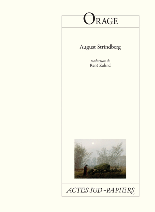 Depuis qu'il a quitté femme et enfant, le Monsieur se satisfait de sa solitude loin des responsabilités d'un ménage. Il mène une existence tranquille et rangée en compagnie de son frère, d'une domestique et de son voisin, un pâtissier malchanceux qui tient sa boutique au rez-de-chaussée de l'immeuble. Mais le passé ressurgit au moment où Gerda, son ancienne épouse, s'installe avec leur enfant et son nouveau mari dans l'appartement du dessus. «August Strindberg (1849-1912), dramaturge et romancier suédois, est considéré comme l'un des pères du théâtre moderne. Après des études de médecine et des débuts dans le journalisme, il se lance dans l'écriture dramatique. Sa première pièce, »Maître Olof« (1872), et le roman »La Chambre rouge« (1879) lui apportent une certaine notoriété. A partir du milieu des années 1880, il sillonne l'Europe et son écriture s'intensifie avec de grandes pices naturalistes : »Pères« (1887), »Mademoiselle Julie« et »Créanciers« (1888). »Orage« est la première pièce qu'il a écrite pour le Théâtre intime, ouvert à Stocholm en 1907.» « Deux de ses pièces, »Mademoiselle Julie« et» Danse de mort«, ont été publiées chez Actes Sud-Papiers.»