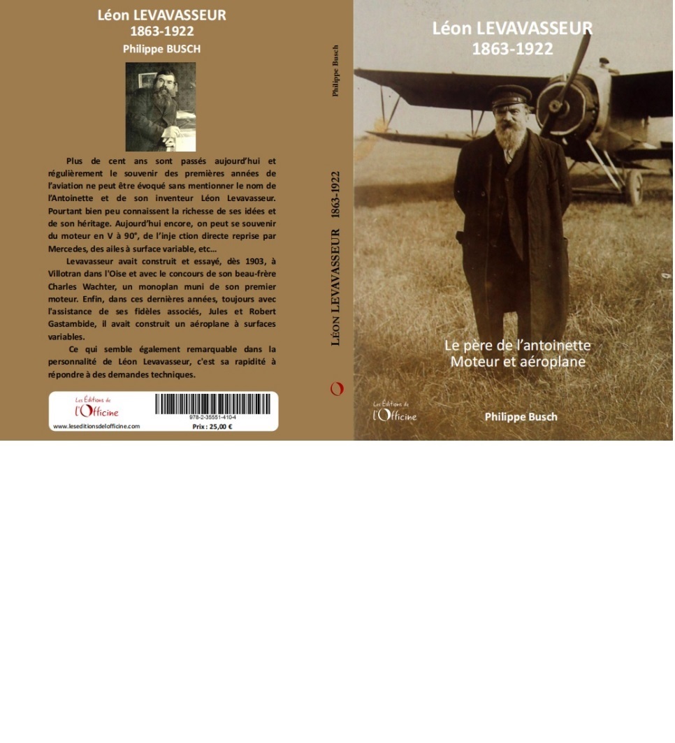 Plus de cent ans sont passés aujourd’hui et régulièrement le souvenir des premières années de l’aviation ne peut être évoqué sans mentionner le nom de l’Antoinette et de son inventeur Léon Levavasseur. Pourtant bien peu connaissent la richesse de ses idées et de son héritage. Aujourd’hui encore, on peut se souvenir du moteur en V à 90°, de l’inje ction directe reprise par Mercedes, des ailes à surface variable, etc… Levavasseur avait construit et essayé, dès 1903, à Villotran dans l'Oise et avec le concours de son beau-frère Charles Wachter, un monoplan muni de son premier moteur. Enfin, dans ces dernières années, toujours avec l'assistance de ses fidèles associés, Jules et Robert Gastambide, il avait construit un aéroplane à surfaces variables. Ce qui semble également remarquable dans la personnalité de Léon Levavasseur, c'est sa rapidité à répondre à des demandes techniques.