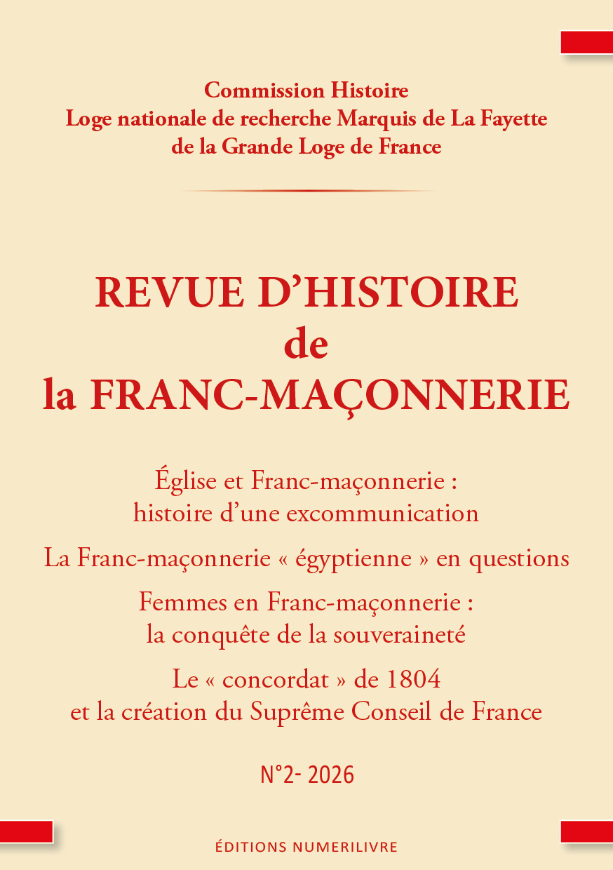 Éditorial : La quête de la mémoire perdue 9Le mot du Grand Maître : Entre Histoire et Lumière 13De quelques tentatives de rapprochement avec l’Église catholique opérées par la Grande Loge de France au XXe siècle 15Francs-maçons catholiques français. Sanctionnés ou pas ? Pourquoi ? 23Clément XII, un inconnu trop connu, ou le pape par qui tout a commencé 45Etude de la Lettre au Souverain Pontife d’Albert Lantoine 53Égypte en Franc-maçonnerie 85Fausse Egypte mais vraies lumières ? 101Franc-maçonnerie Féminine : Souveraineté totale 117La renaissance des Loges d’adoption au XXe siècle sous les auspicesde la Grande Loge de France 137Le Concordat de 1804 149Le paysage maçonnique en France en 1804 à la veille de la fondationdu Suprême Conseil de France 171Le DELTA d’Alger 1873-1976, Un siècle d’Écossisme en action 175L’affaire Morgan et le « Parti antimaçonnique » américain 231De l’influence des Jésuites sur les discours de Ramsay 239La vie d’une loge de la Grande Loge symbolique écossaise 255