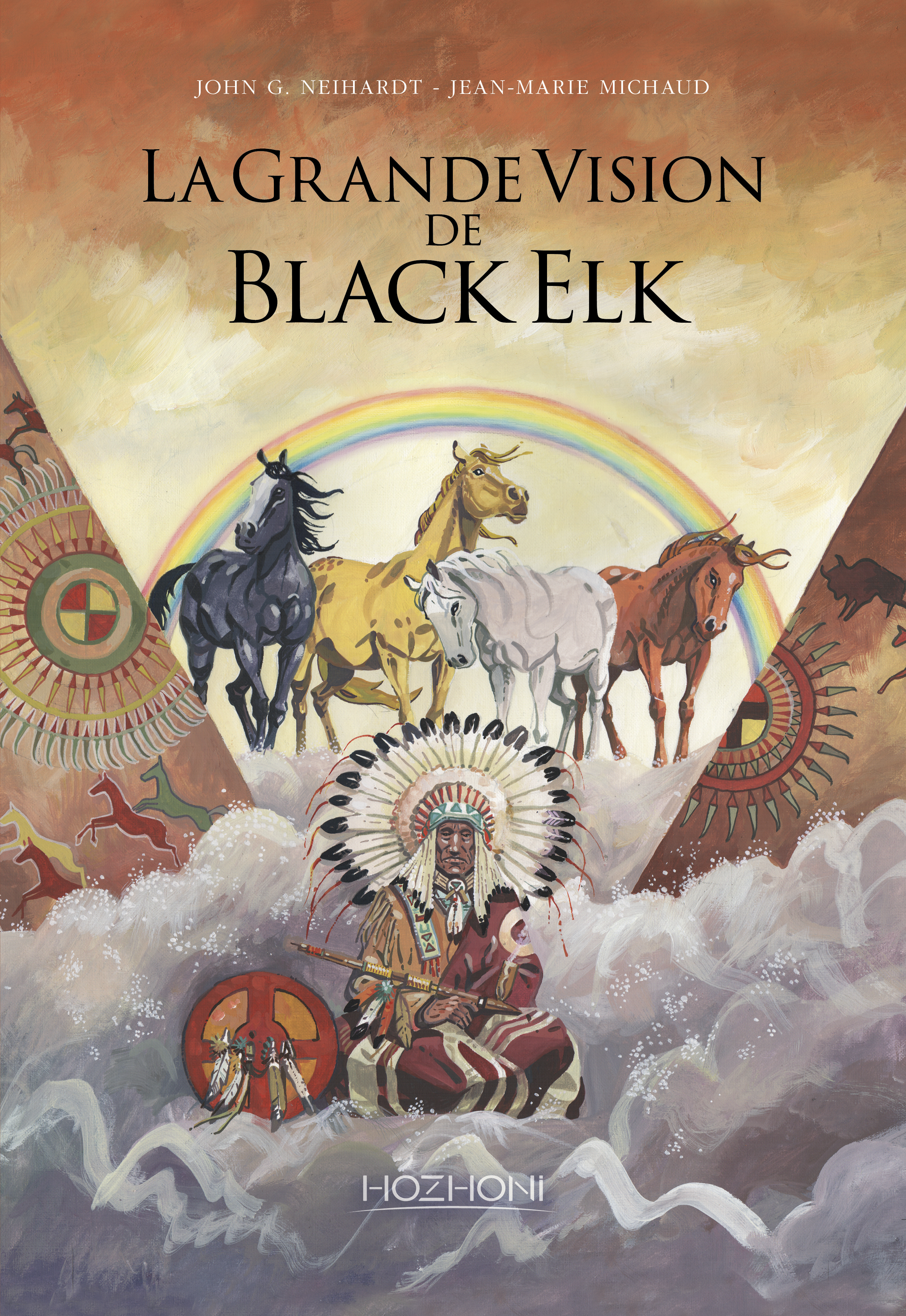 Une nouvelle BD de l'auteur du Mahabharata ( avec Jean-Claude Carrière) et de AÏki. le rêve du guerrier.La mise en images de l'extraordinaire vision du jeune Black Elk (9 ans) telle qu'il l'a racontée en 1930 à l'écrivain John G.Neihardt dans le célèbre ouvrage Black Elk parle, édition complète en 2021 chez Hozhoni.Ce récit extrait de Black Elk parle est la mise en images d'une vision qui a duré 3 jours. On va découvrir que l'enfant transporté dans un autre monde a été investi des pouvoirs de l'un des Six Grands-Pères - les six directions de l'espace "vieilles comme le monde" - qui résident à la confluence des "quatre quartiers du monde". Il est lui-même la "direction du Bas" (le Nadir), celle qui donne vie à l'humanité et guérit les blessures. Et c'est à ce titre que les Six Grands-Pères vont lui confier "le Centre du Cercle de la Nation" pour qu'il s'emploie à faire revivre la nation indienne dont le cercle est brisé... Le prophète sioux est investi d'une mission fantastique, retrouver la Sagesse éternelle symbolisée par l'Étoile du Matin.Jamais cette vision - qui est au coeur du livre et de son mystère - n'avait été mise en BD et on peut ainsi mieux comprendre sa charge symbolique et apocalyptique.C'est la vision d'un heyoka, un "rêveur du Tonnerre", dont le récit prophétique a été salué comme "la Bible" des indiens lakotas.