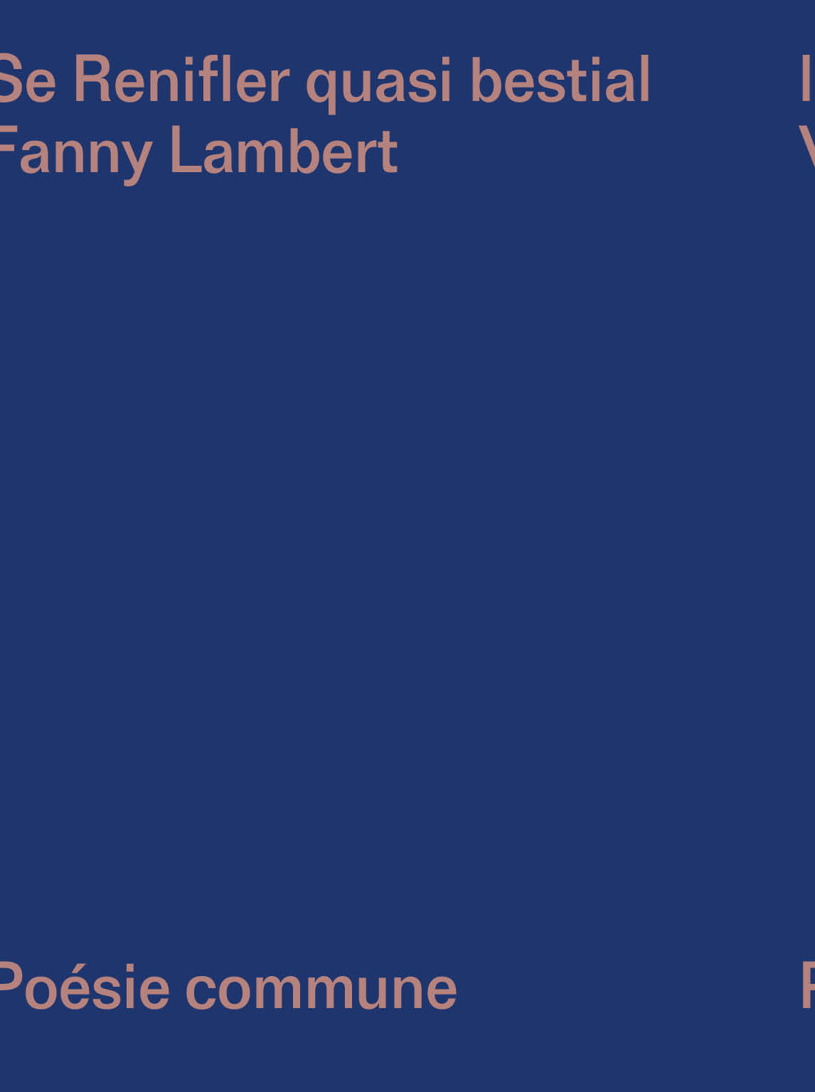 Flairer la présence, marquer ses limites puis se tenir proche et grogner, Se Renifler quasi bestial pourrait être la genèse d'une rencontre où, au milieu de la frayeur et des corps vacillants, les sens se sont enchainés et les instincts brûlés. Une façon d'approcher, peut-être, et de tâter l'abord de l'autre dans ses contours. Le texte coule ou s'explose sur lui-même dans une tentative de figurer les prémices d'un langage sensible conçu par une animalité. Alternant silences et mugissements, corps, langues, feux, se déplient dans une voix beuglante. De là, de petits déchirements originels se succèdent, entre gestes et bêtes tapies. Dans un retour à un archaïsme du lien, ce livre choisit de tenter la mise de l'animalité. Pour cela, une langue mise en pièces, explosée dans une sorte de stase venant dire l'impossibilité du langage à transcrire mugissements, habitus et instincts, et qui échappent aux définitions, comme aux individus. Ramenés à cette primitivité qu'elles n'ont sans doute jamais tout à fait perdue, les voix s'entendent ici de loin ou au contraire de très très près, comme l'animal s'approche de son congénère, les sens en éveil, en contact premier avec l'environnement qui l'entoure.