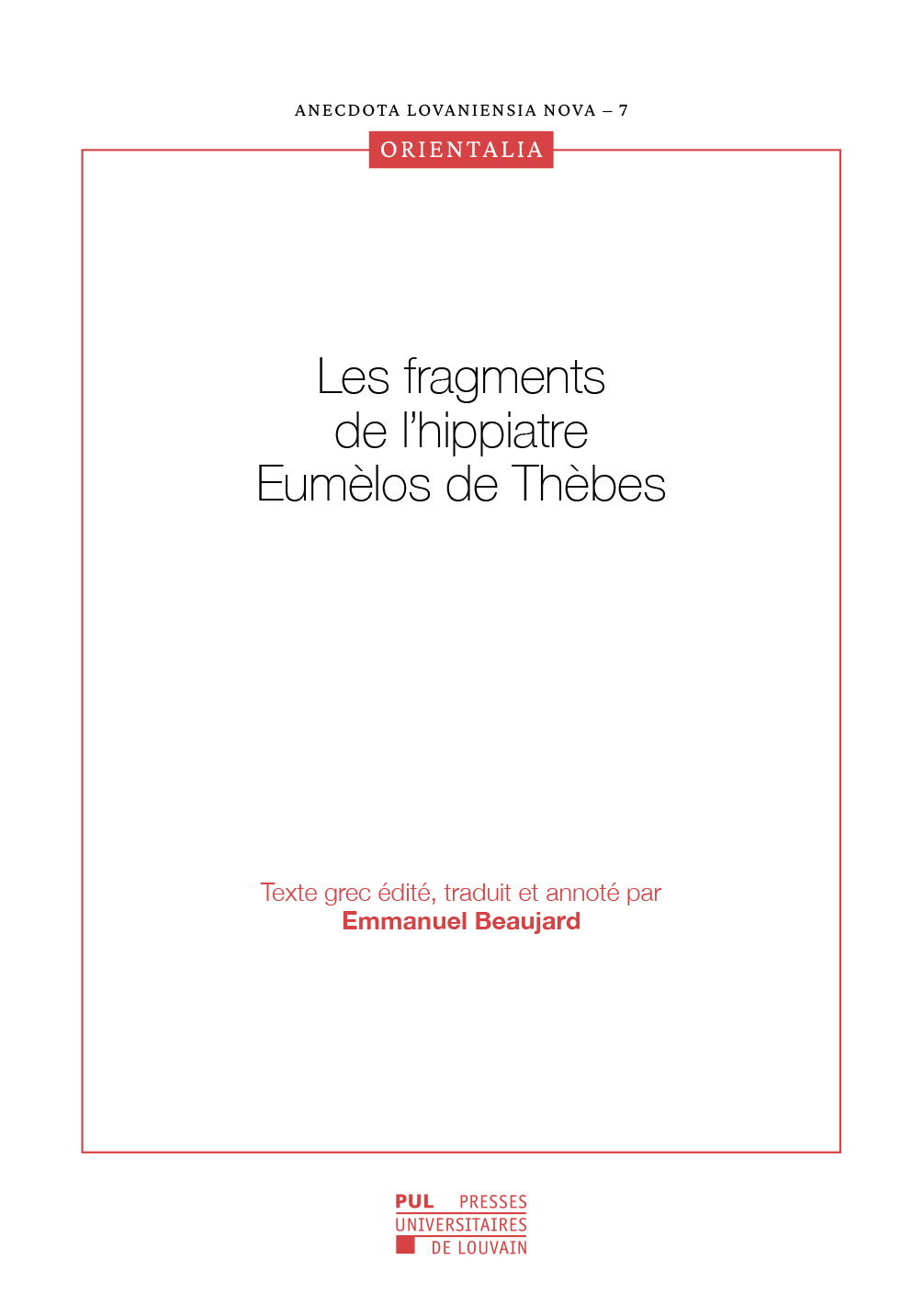 LES FRAGMENTS DE L'HIPPIATRE EUMELOS DE THEBES