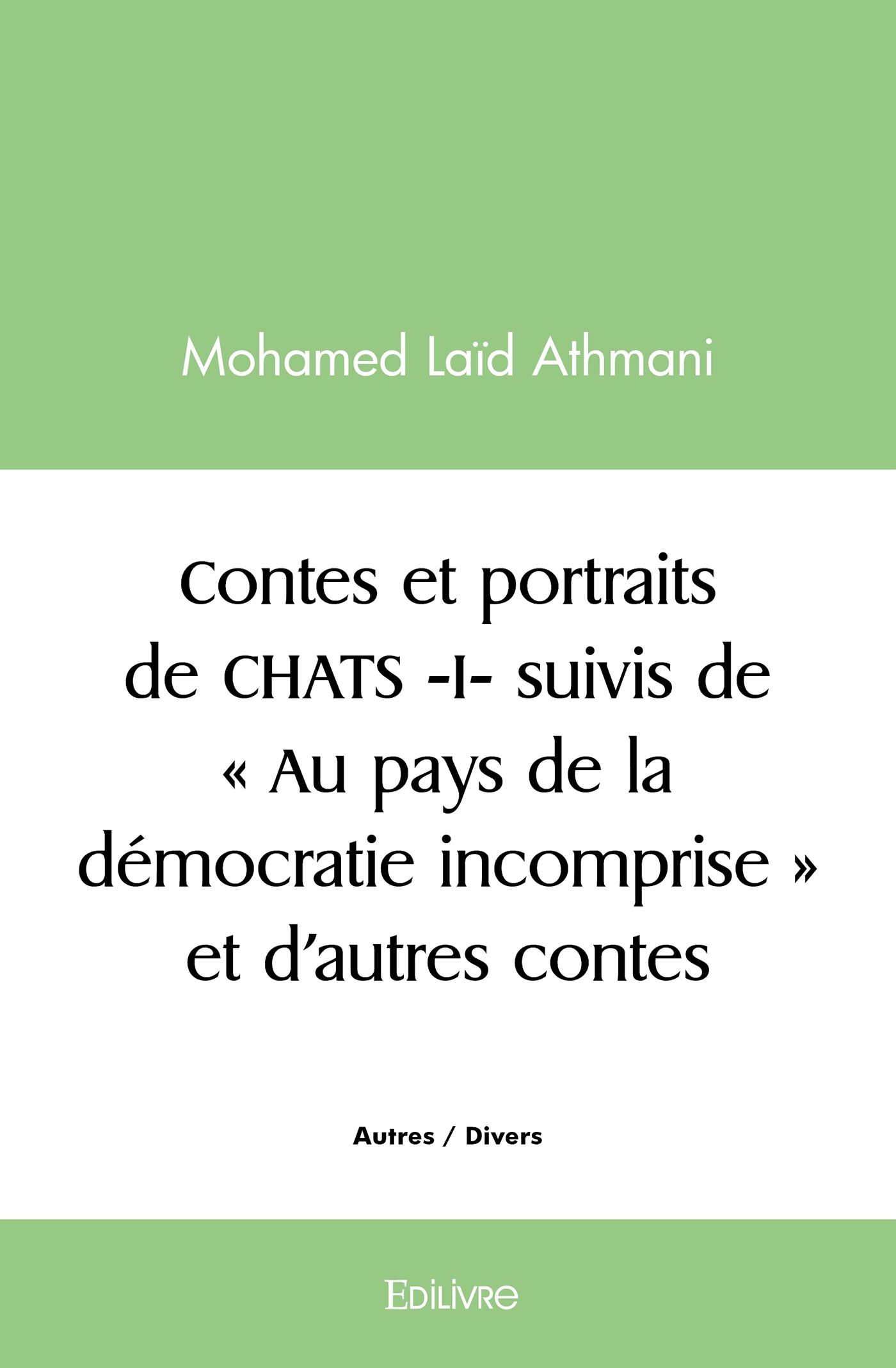 Contes et portraits de CHATS, suivi de Au pays de la démocratie incomprise et d'autres contes est un recueil d'écrits satiriques qu'a puisé Mohamed Laïd Athmani de son expérience de la vie de tous les jours dans son pays, l'Algérie. Il nous rend compte aussi du passage si douloureux de son pays à la démocratie. Toujours militant guerroyant en solitaire, soucieux du devenir du peuple algérien, il dénonce, informe et met en garde sa société contre tous ces "CHATS", personnages négatifs qui ne font qu'empêcher la machine socio-politique, économique, juridique et religieuse de tourner correctement.