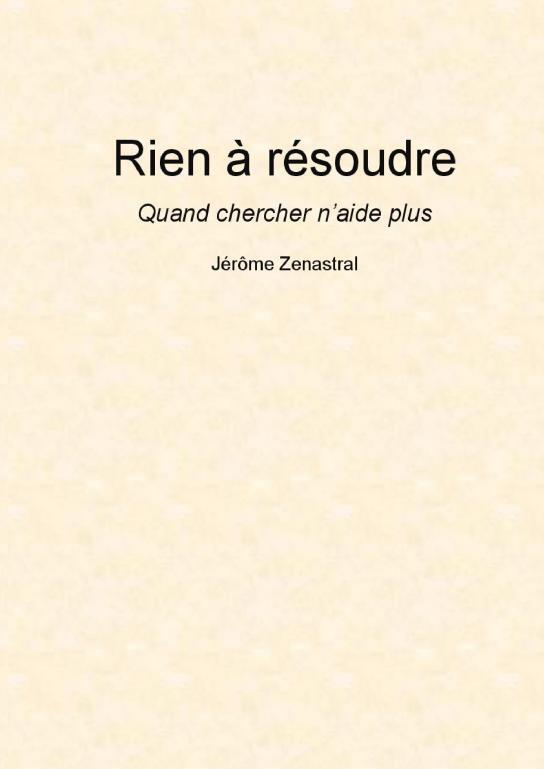 Rien à résoudre Quand chercher n'aide plus Beaucoup cherchent à comprendre, à aller mieux, à trouver un sens. Et parfois, cette recherche devient elle-même fatigante. Ce livre ne propose ni solution, ni chemin, ni regard juste. Il décrit simplement ce moment où l'effort ne répond plus. Quand chercher n'aide plus, il peut rester quelque chose de très simple : ce qui est, sans avoir à le résoudre.
