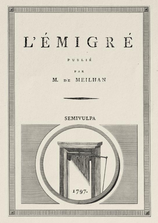 Réédition en grand format du texte intégral de L'Émigré, célèbre roman polyphonique et épistolaire de Gabriel Sénac de Meilhan, publié pour la première fois en 1797. © SEMIVULPA ÉDITIONS ISBN : 978-2-488820-14-1