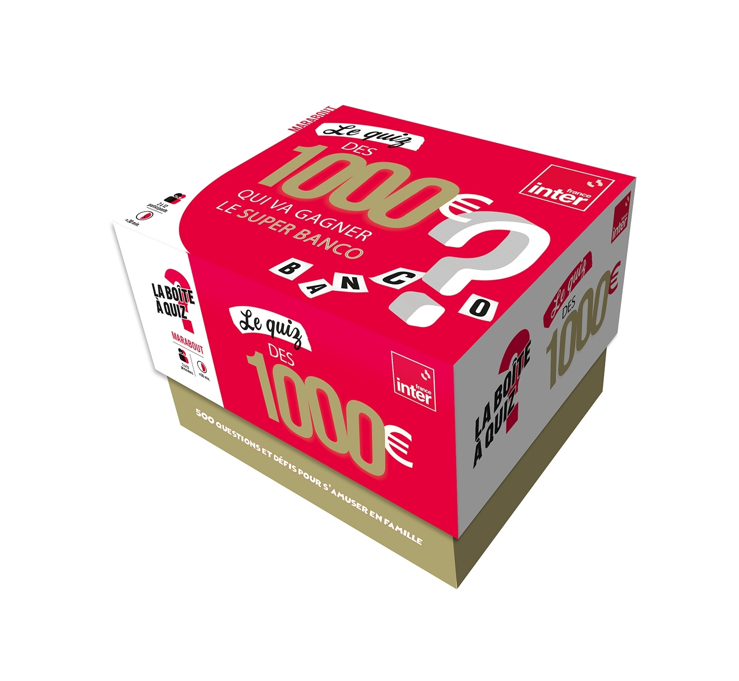 Répondez aux questions pour tenter de remporter le super banco !La boîte contient 130 cartes avec des questions ouvertes ou à choix multiples.Les cartes sont divisées en quatre étapes de questions : couleurs, repêchage, banco et super banco et il vous faudra répondre à une grande majorité de questions sur chaque carte pour réussir à passer à l'étape suivante.Celui qui répond en premier aux questions sur une carte super banco, la dernière étape, a gagné !Exemples de questions :- A quel village de l'Ondre le nom George Sand est-il lié ? - Quel est le rôle des globules blancs dans le sang ?- Quel chanteur américain est l'interprète de la chanson "Oh ! Pretty Woman" ? Les réponses sont dans la boîte !