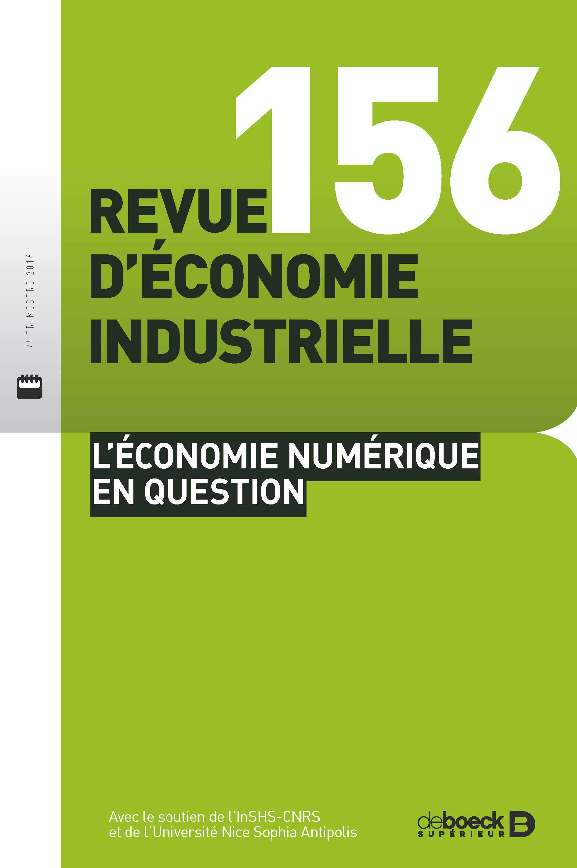Revue d'économie industrielle 2016/4 - 156 - L’ÉCONOMIE NUMÉRIQUE EN QUESTION