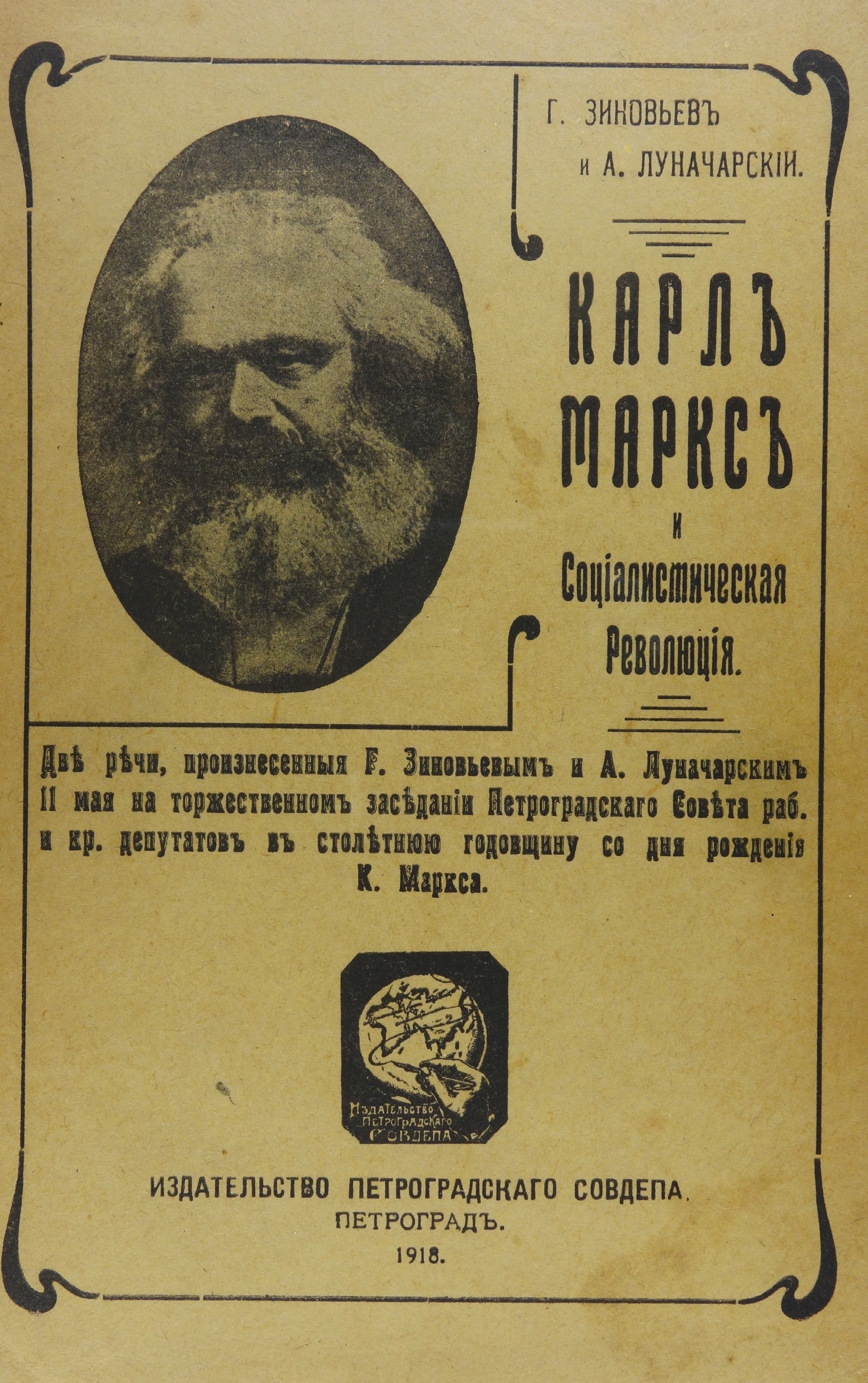 Unabridged photographic copy of the 1918 first edition of these rare texts by G. Zinoviev and A. Lunacharskii with both their unedited articles on Karl Marx and the revolution. A book that was prohibited after Stalin came to power in 1925. We guarantee that all of our copies are perfectly readable.